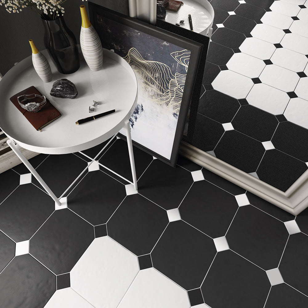 A black-and-white octagon tile that brings sophistication and edge to any space. Our Lisbon Collection transforms everyday surfaces into bold design statements.