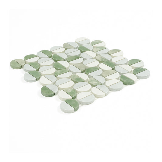 Serenity Axis - Thassos Ming and Celeste 2 Inch Circle Mosaic