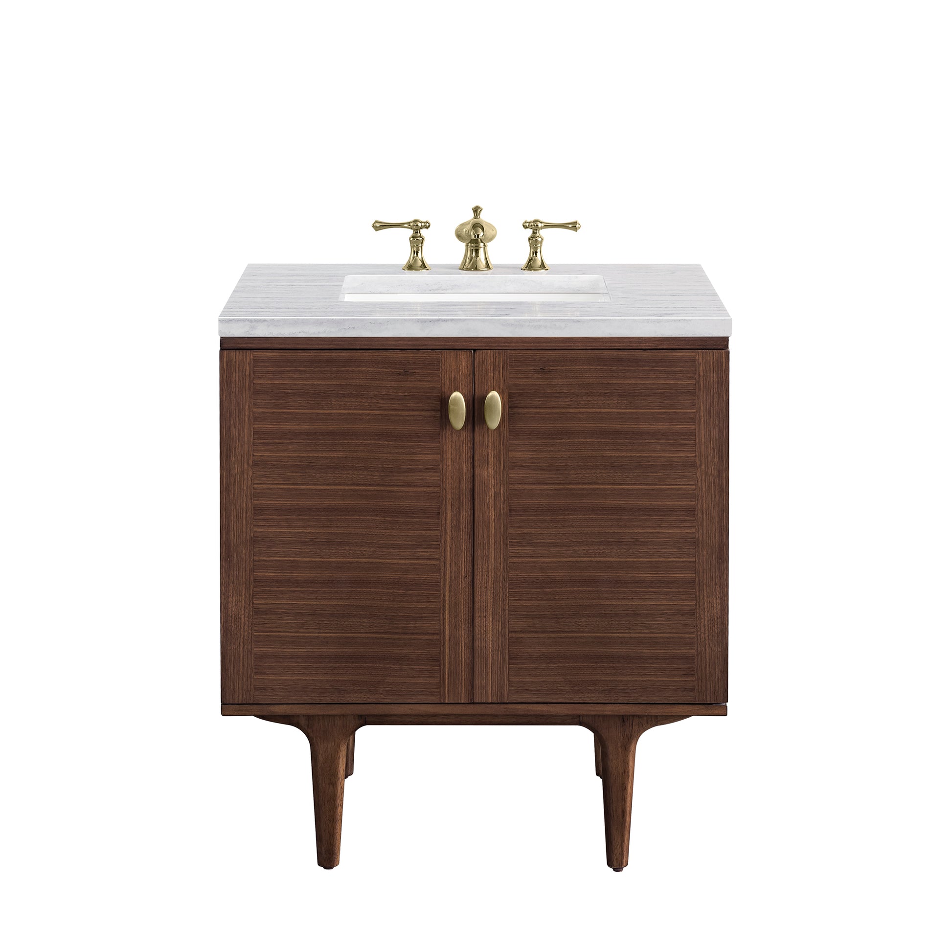 Amberly 30" Single Vanity, Mid-Century Walnut w/ 3 CM Arctic Fall Top