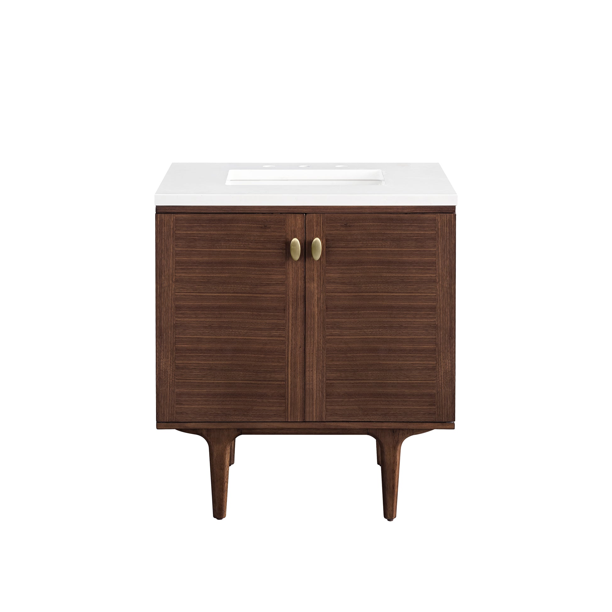 Amberly 30" Single Vanity, Mid-Century Walnut w/ 3 CM White Zeus Top