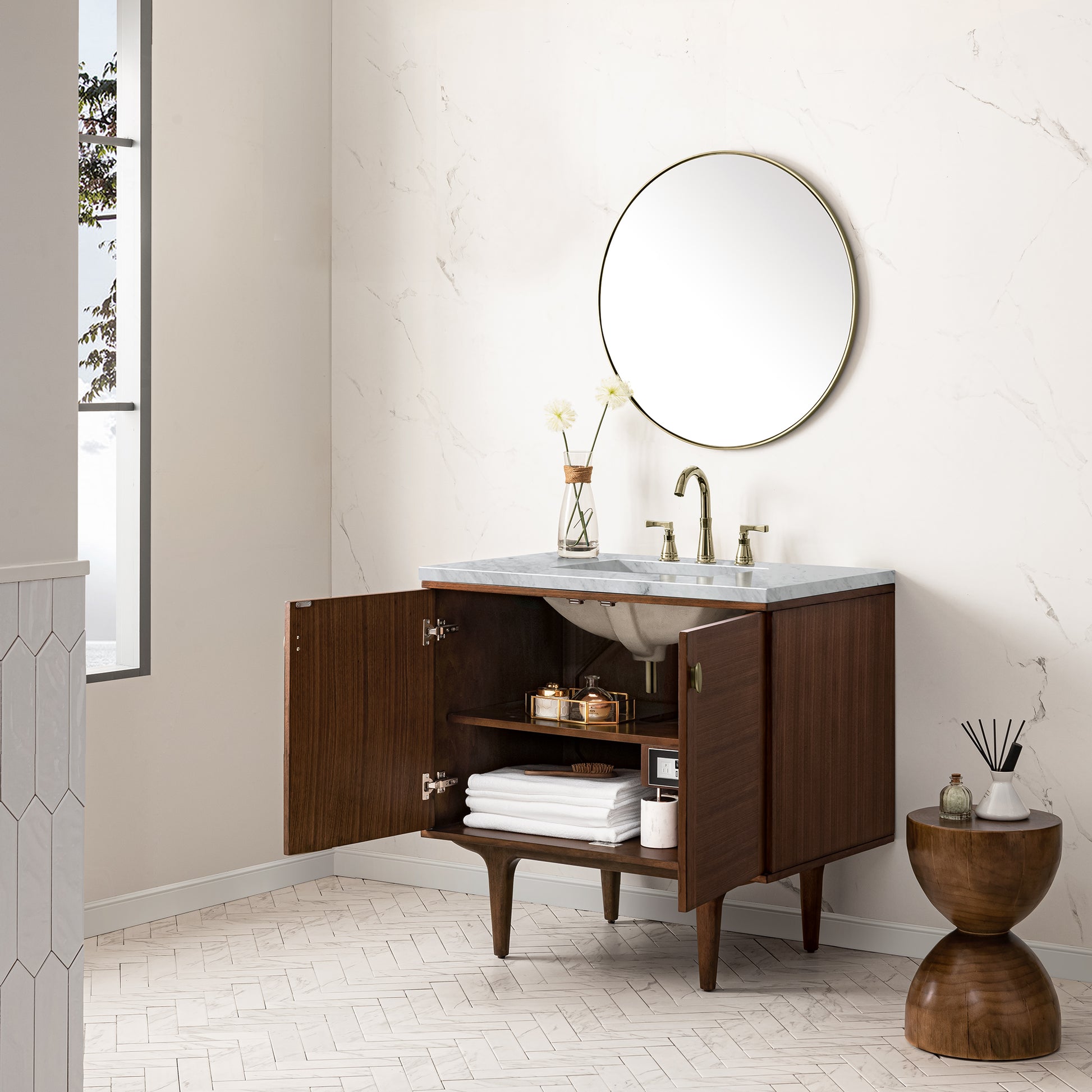 Amberly 36" Single Vanity, Mid-Century Walnut w/ 3 CM Carrara Marble Top
