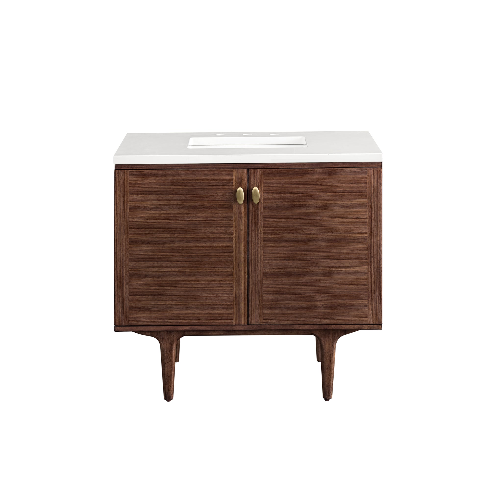 Amberly 36" Single Vanity, Mid-Century Walnut w/ 3 CM White Zeus Top