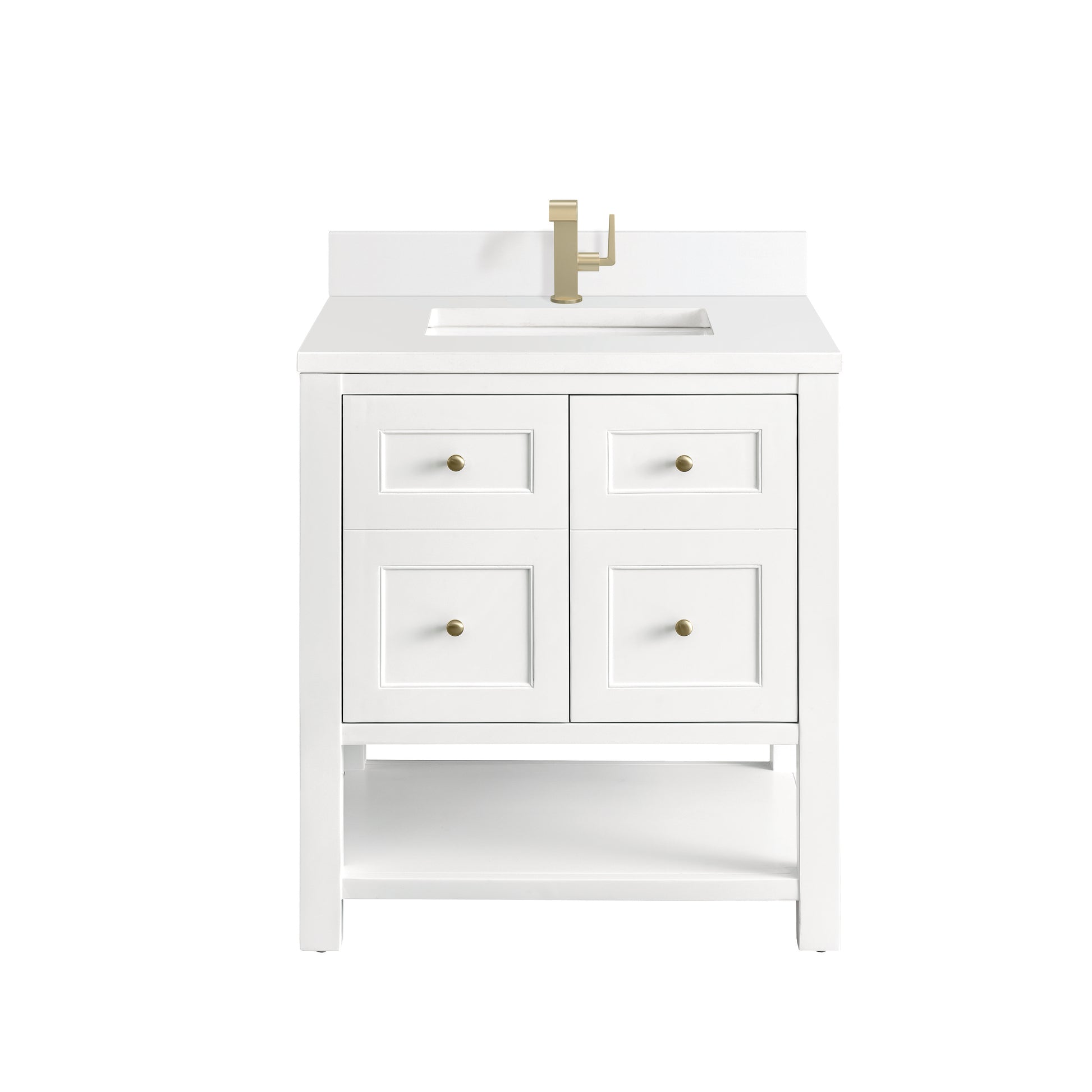 Breckenridge 30" Single Vanity, Bright White w/ Single Hole 3 CM White Zeus Top & Backsplash