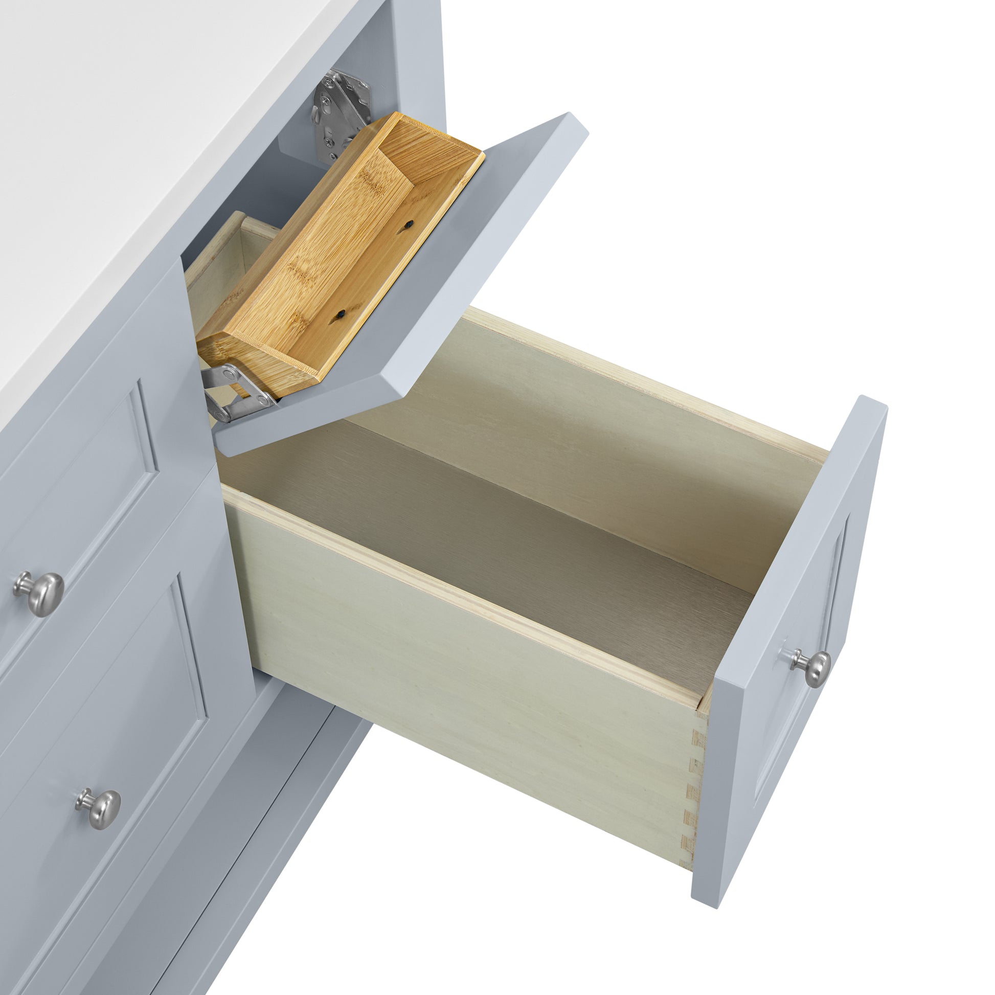• Drawer boxes feature English Dovetail joinery with premium, softclose undermount drawer slides; doors feature softclose, adjustable door hinges