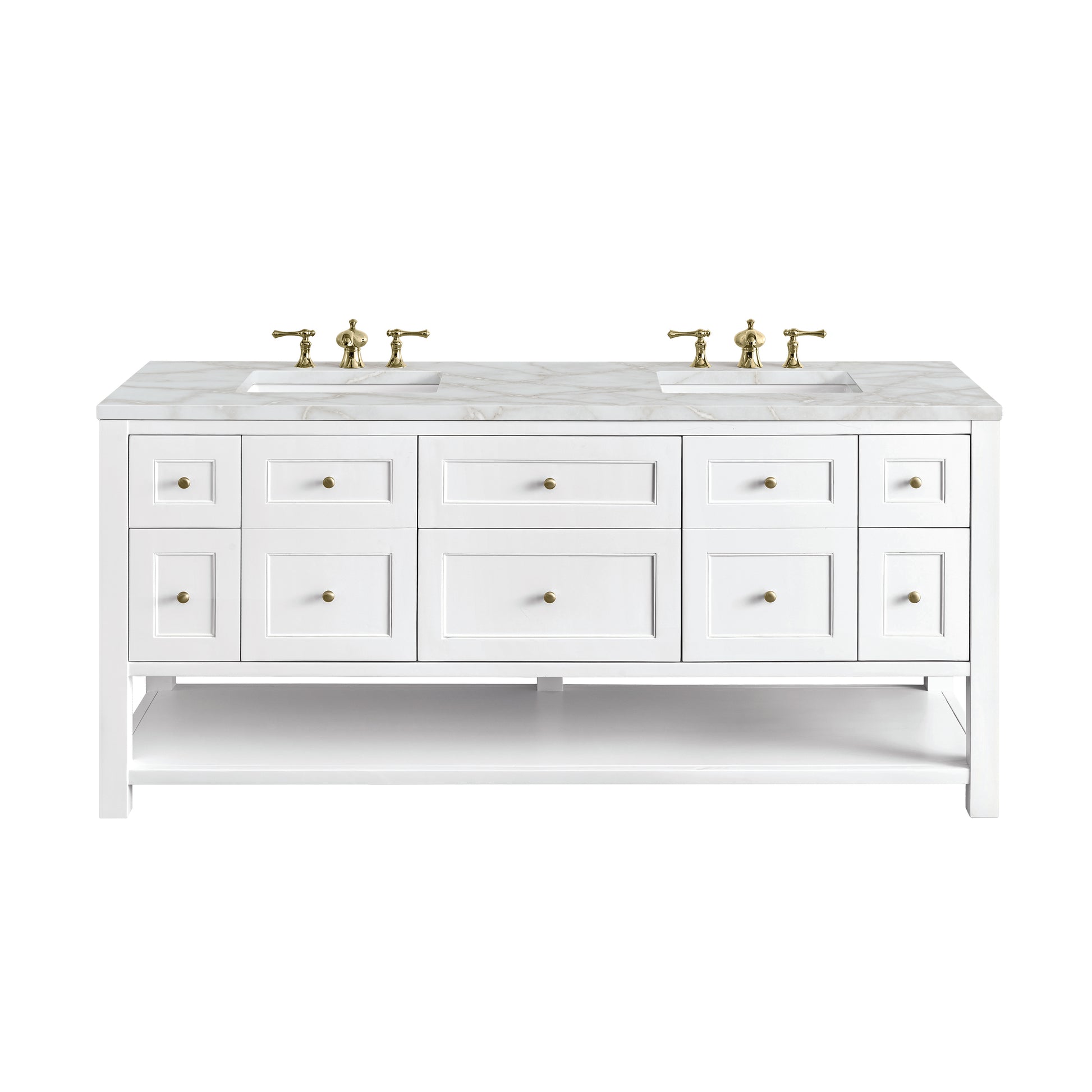 • Bright White finish with Champagne Brass hardware