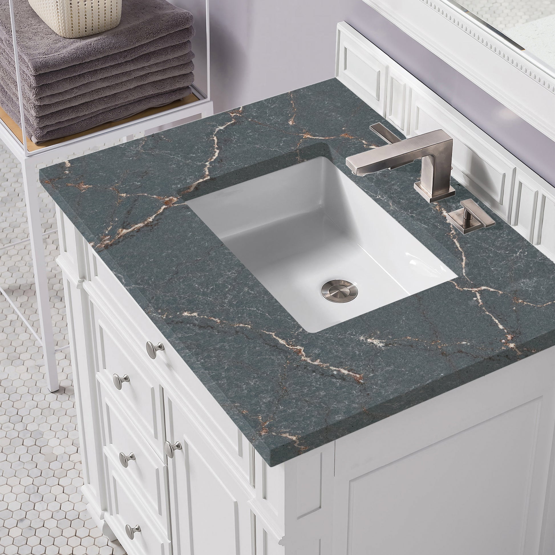 Bristol 30" Single Vanity, Bright White w/ 3 CM Parisien Bleu Silestone Top