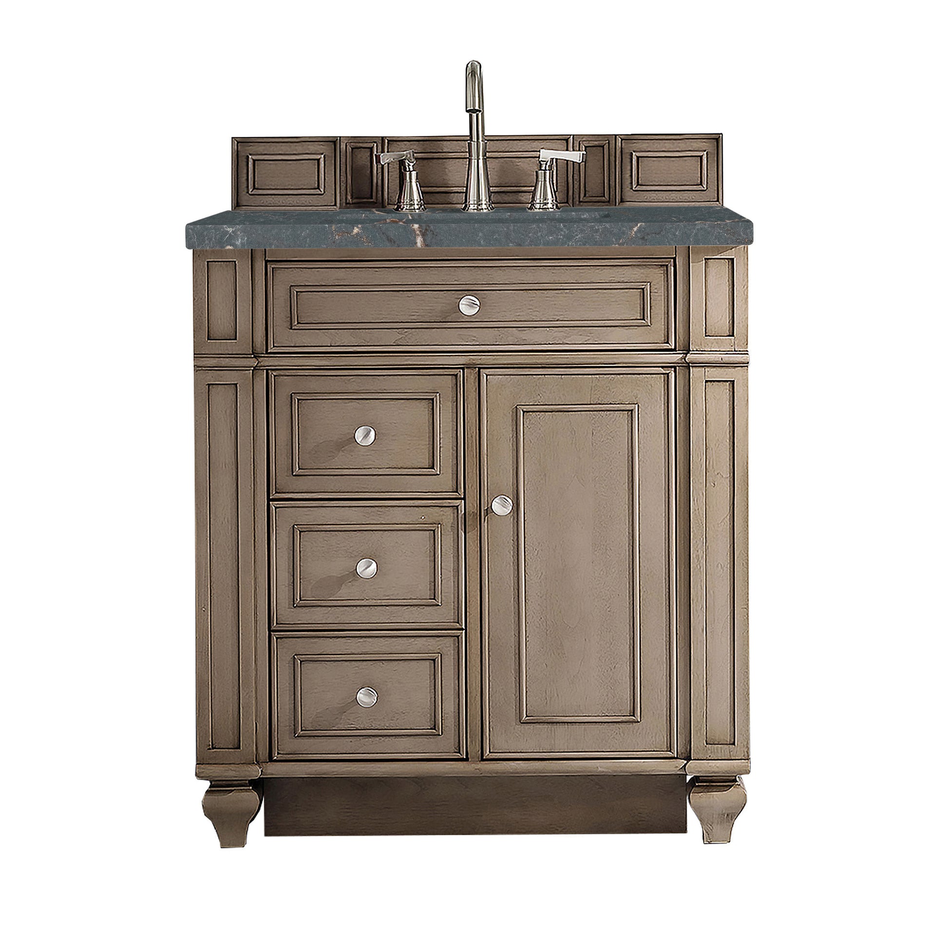Bristol 30" Single Vanity, Whitewashed Walnut w/ 3 CM Parisien Bleu Silestone Top