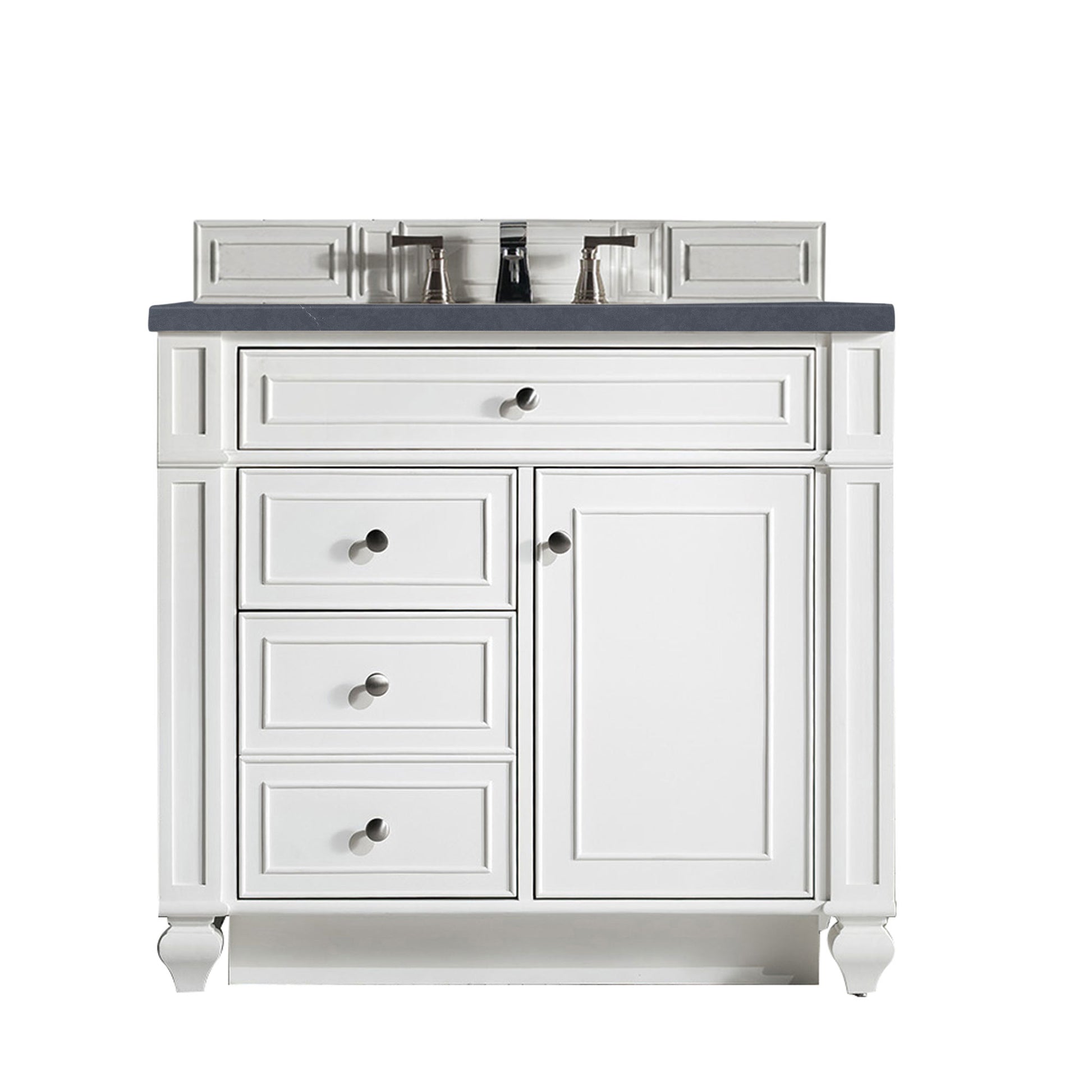 Bristol 36" Single Vanity, Bright White w/ 3 CM Charcoal Soapstone Silestone Top