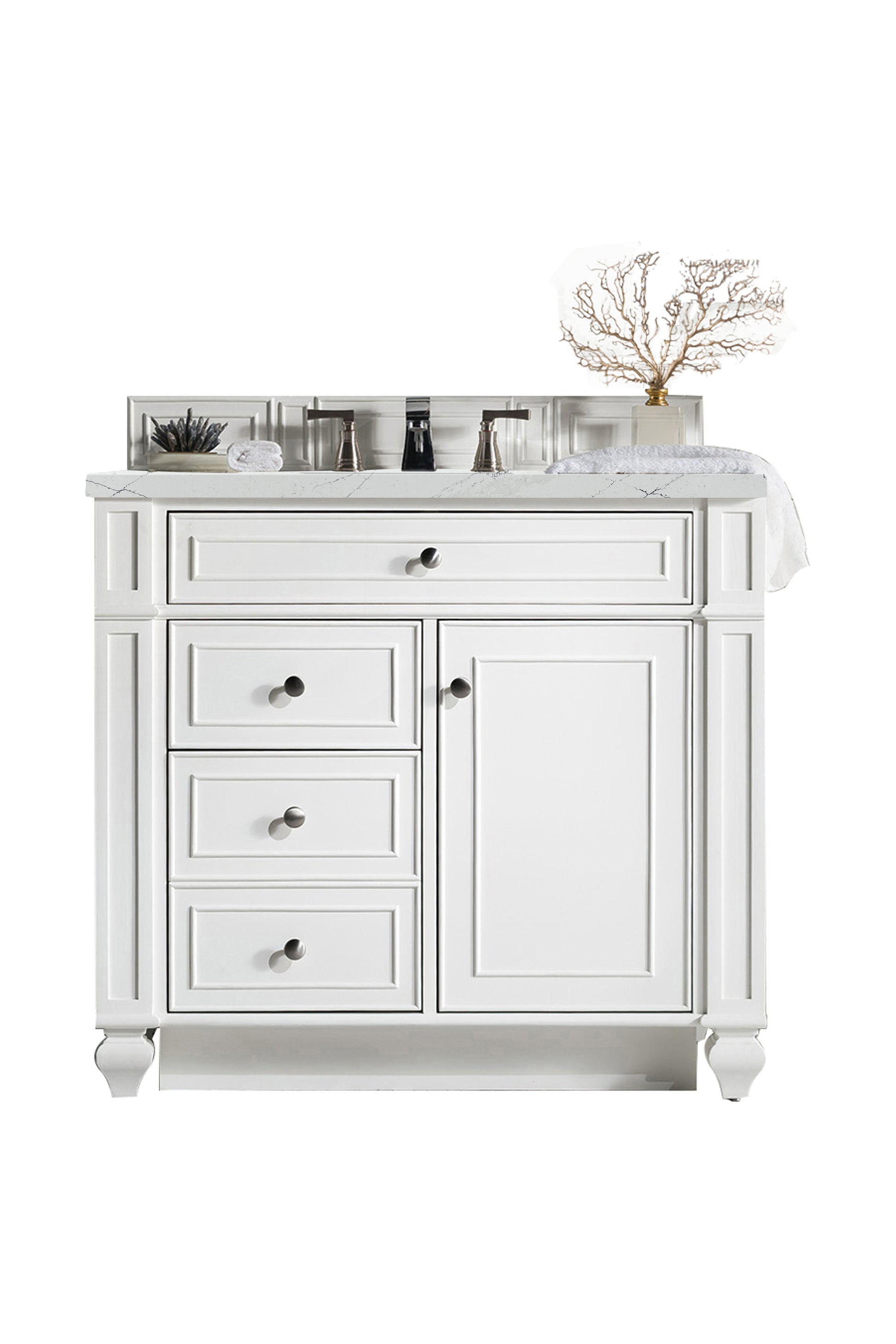 Bristol 36" Single Vanity, Bright White w/ 3 CM Ethereal Noctis Silestone Top