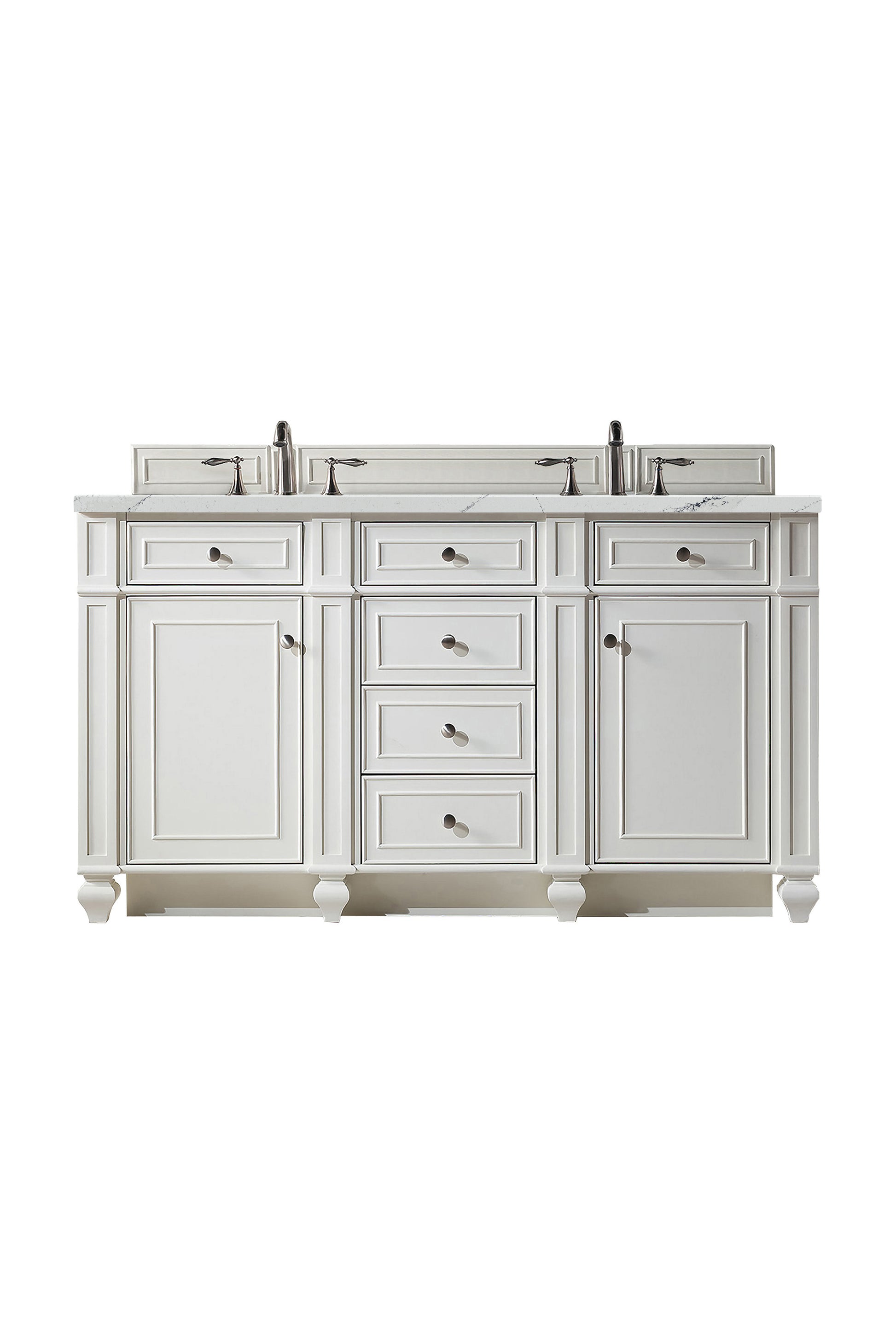 Bristol 60" Double Vanity, Bright White w/ 3 CM Ethereal Noctis Silestone Top