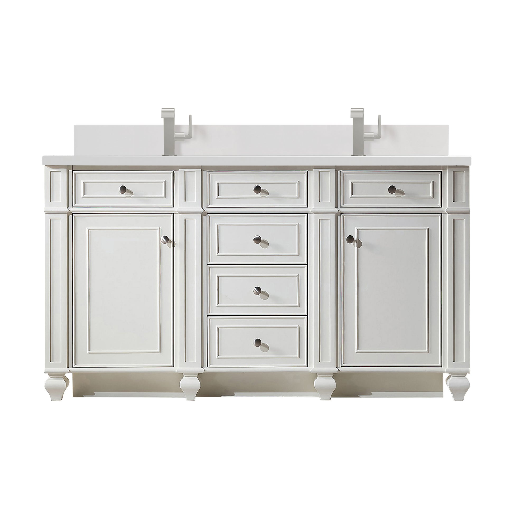 Bristol 60" Double Vanity, Bright White w/ Single Hole 3 CM White Zeus Silestone Top & Backsplash