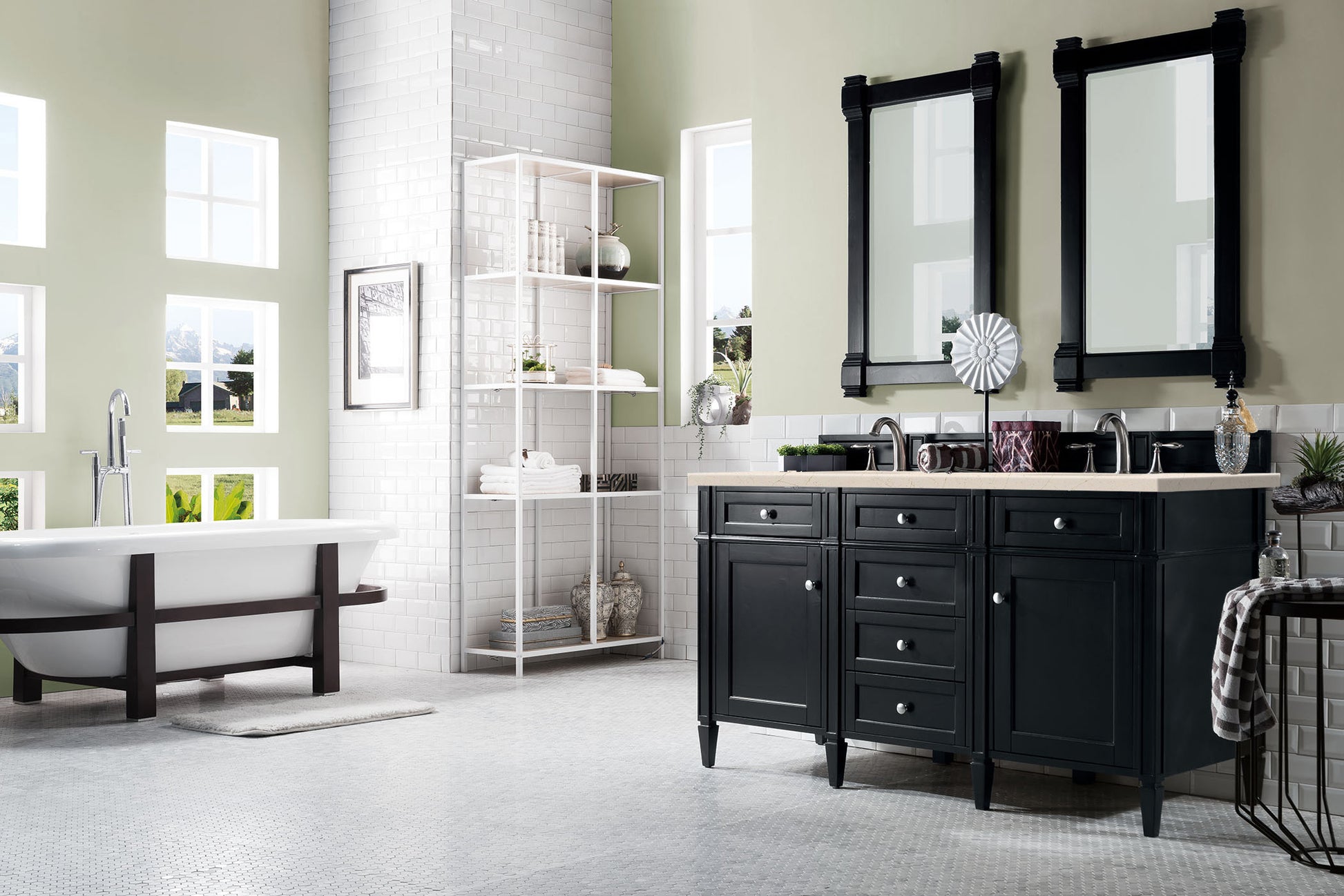 Brittany 60" Double Vanity, Black Onyx w/ 3 CM Eternal Marfil Silestone Top