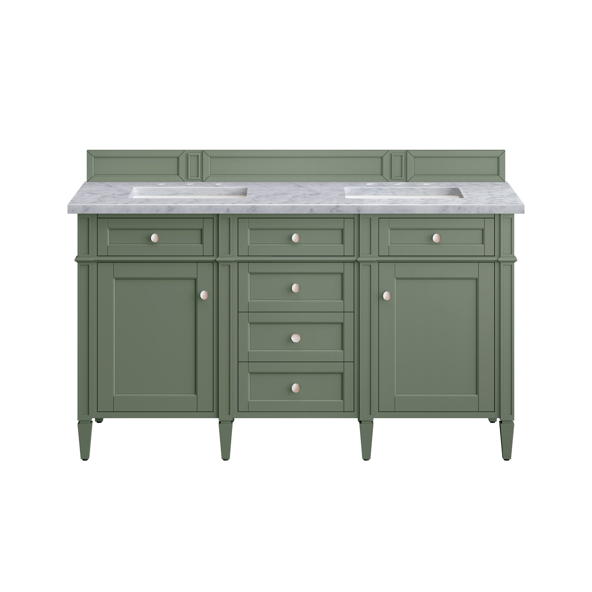 Brittany 60" Double Vanity, Smokey Celadon w/ 3 CM Carrara Marble Top