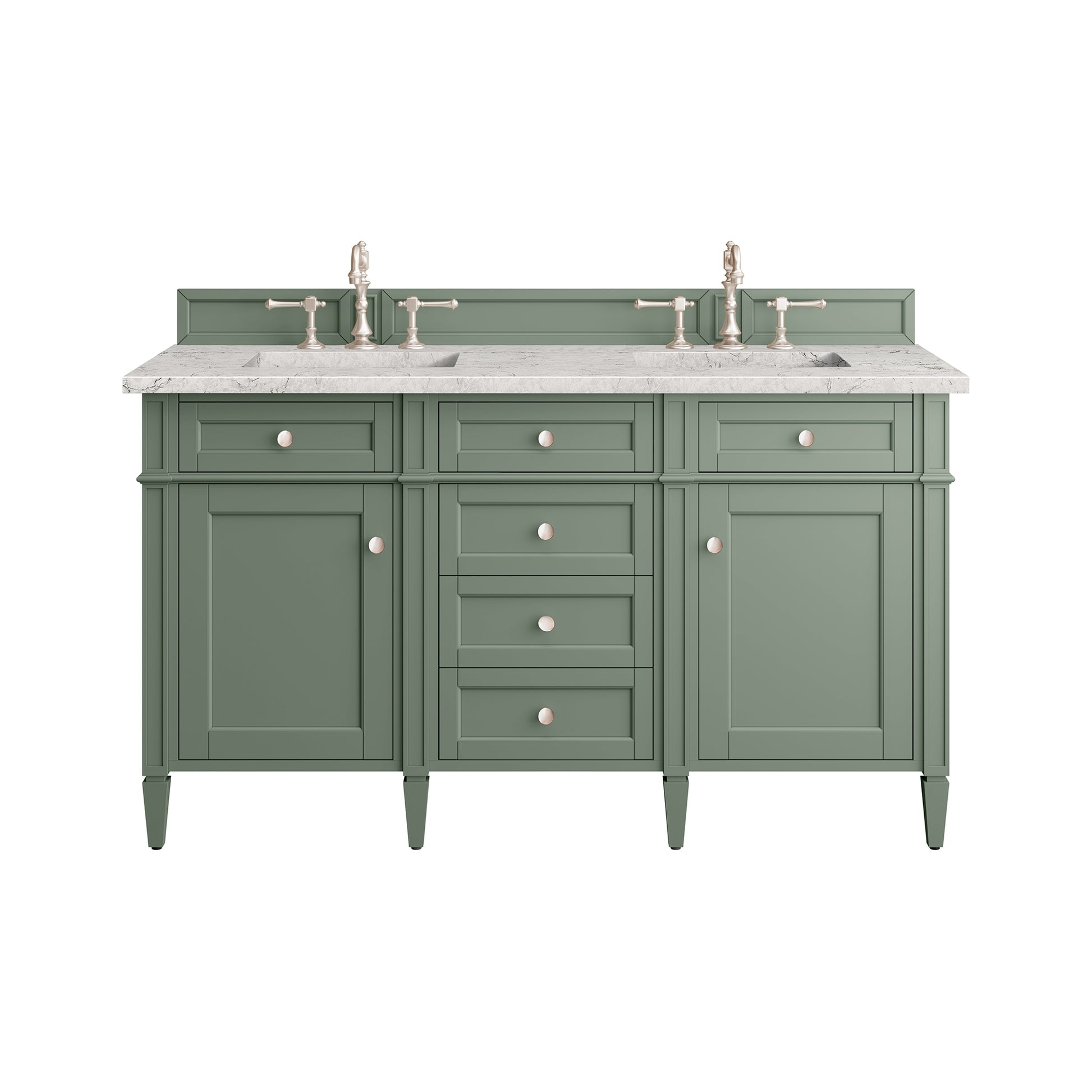 Brittany 60" Double Vanity, Smokey Celadon w/ 3 CM Eternal Jasmine Pearl Top