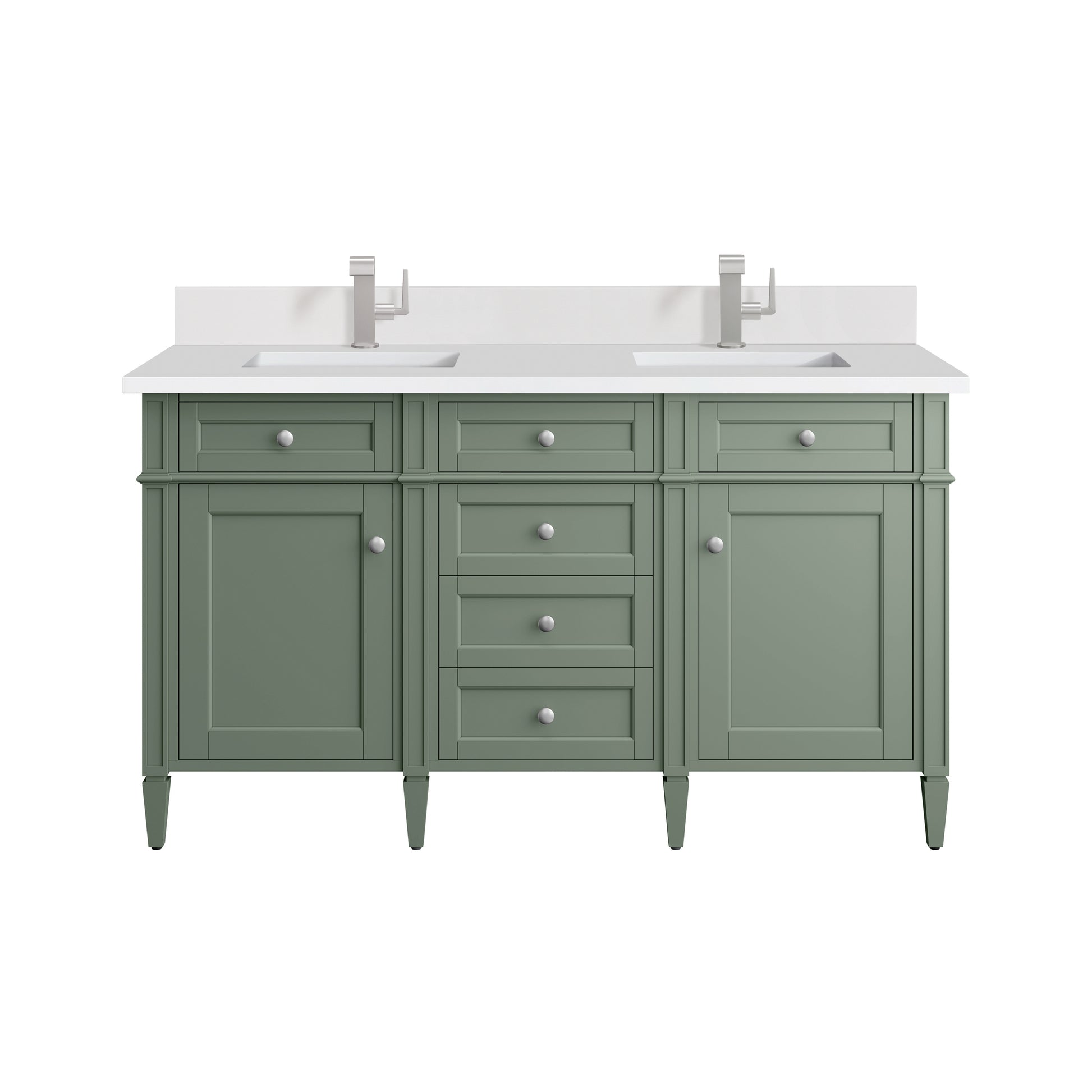 Brittany 60" Double Vanity, Smokey Celadon w/ Single Hole 3 CM White Zeus Top & Backsplash
