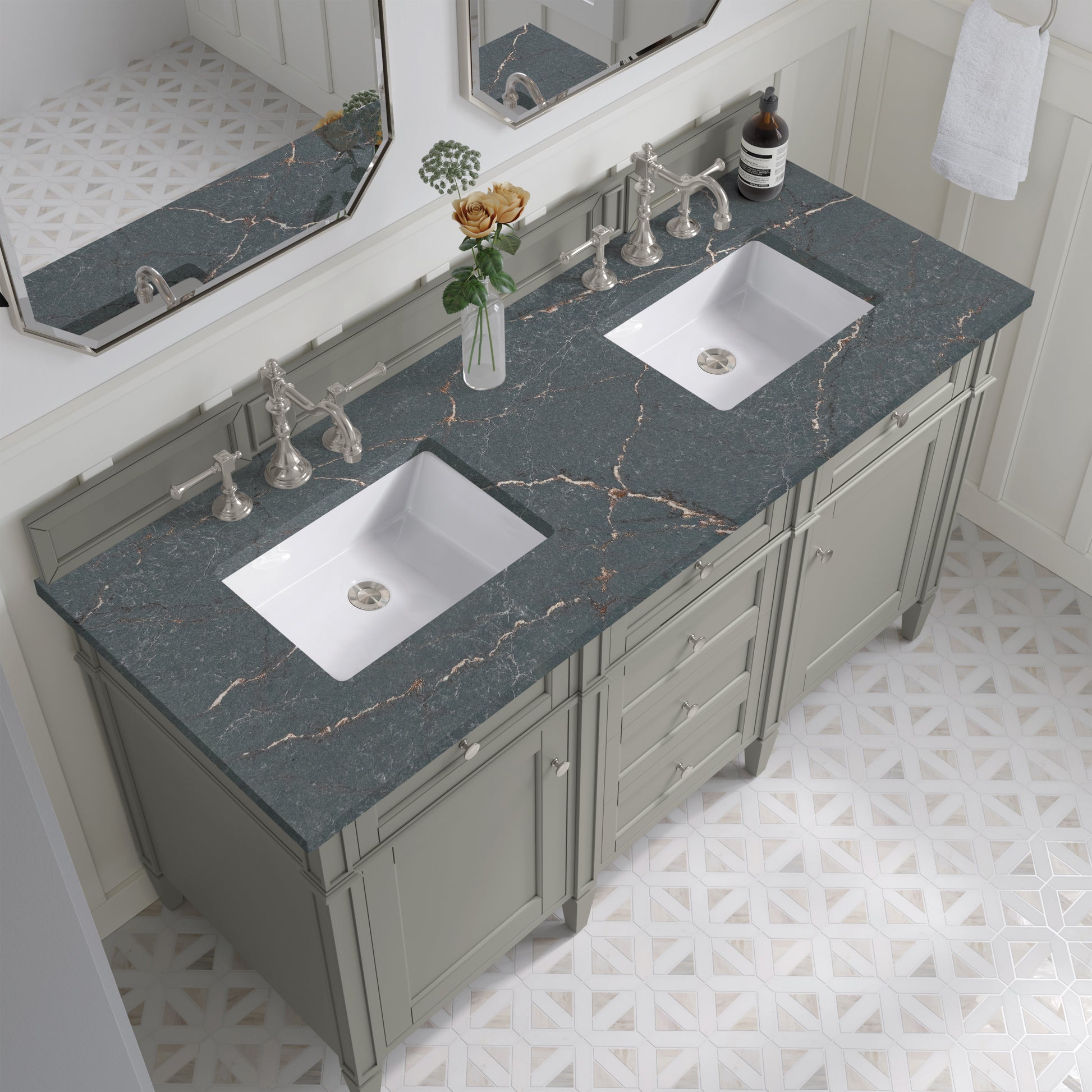 Brittany 60" Double Vanity, Urban Gray w/ 3 CM Parisien Bleu Silestone Top