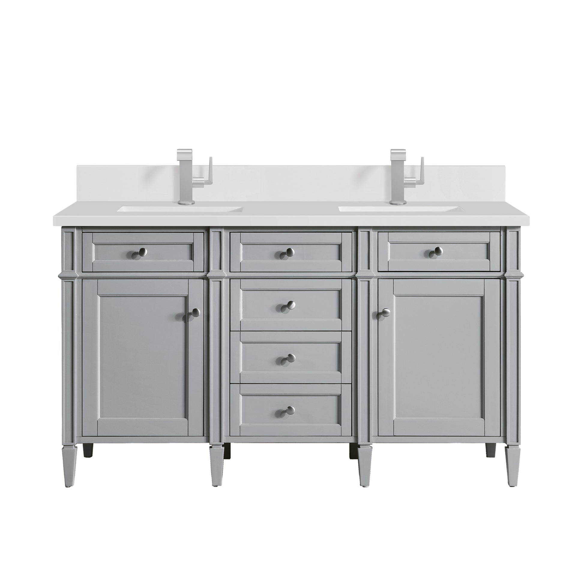 Brittany 60" Double Vanity, Urban Gray w/ Single Hole 3 CM White Zeus Silestone Top & Backsplash