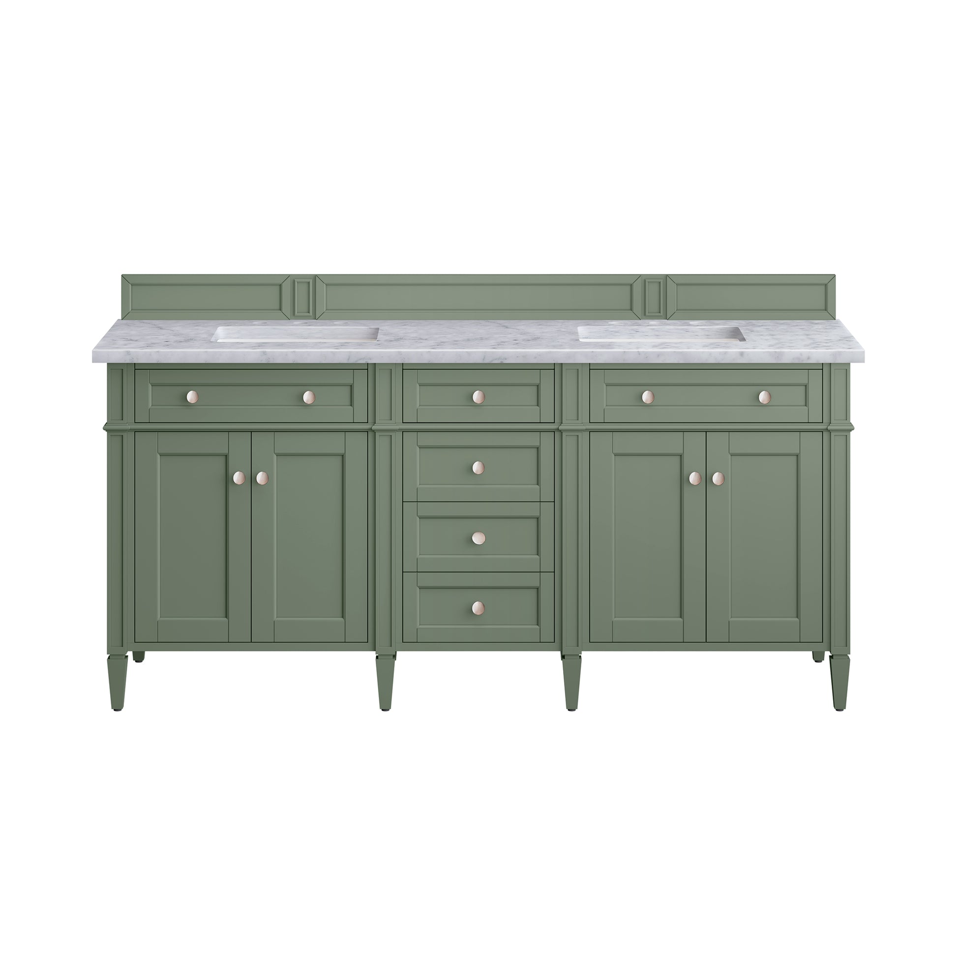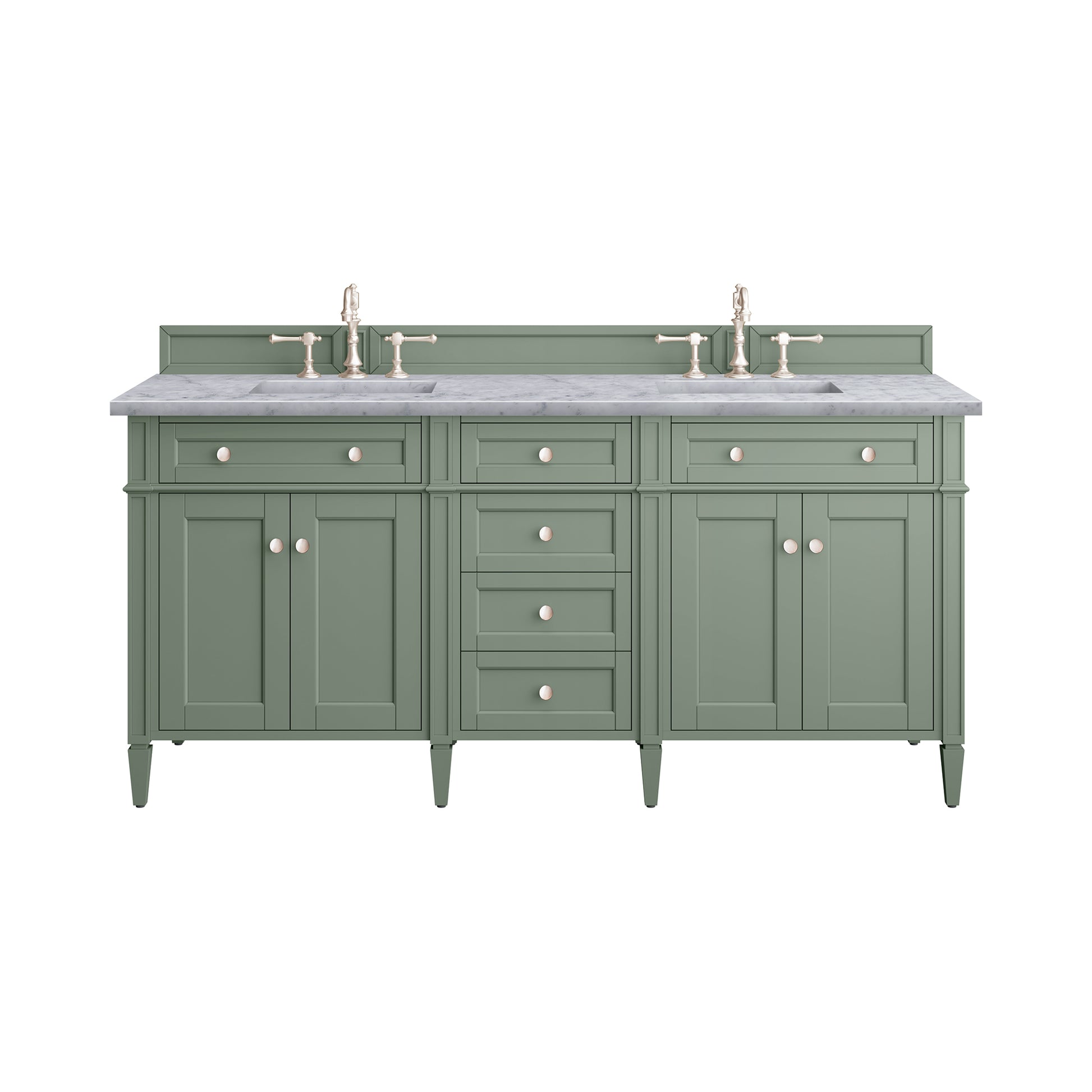 Brittany 72" Double Vanity, Smokey Celadon w/ 3 CM Carrara Marble Top