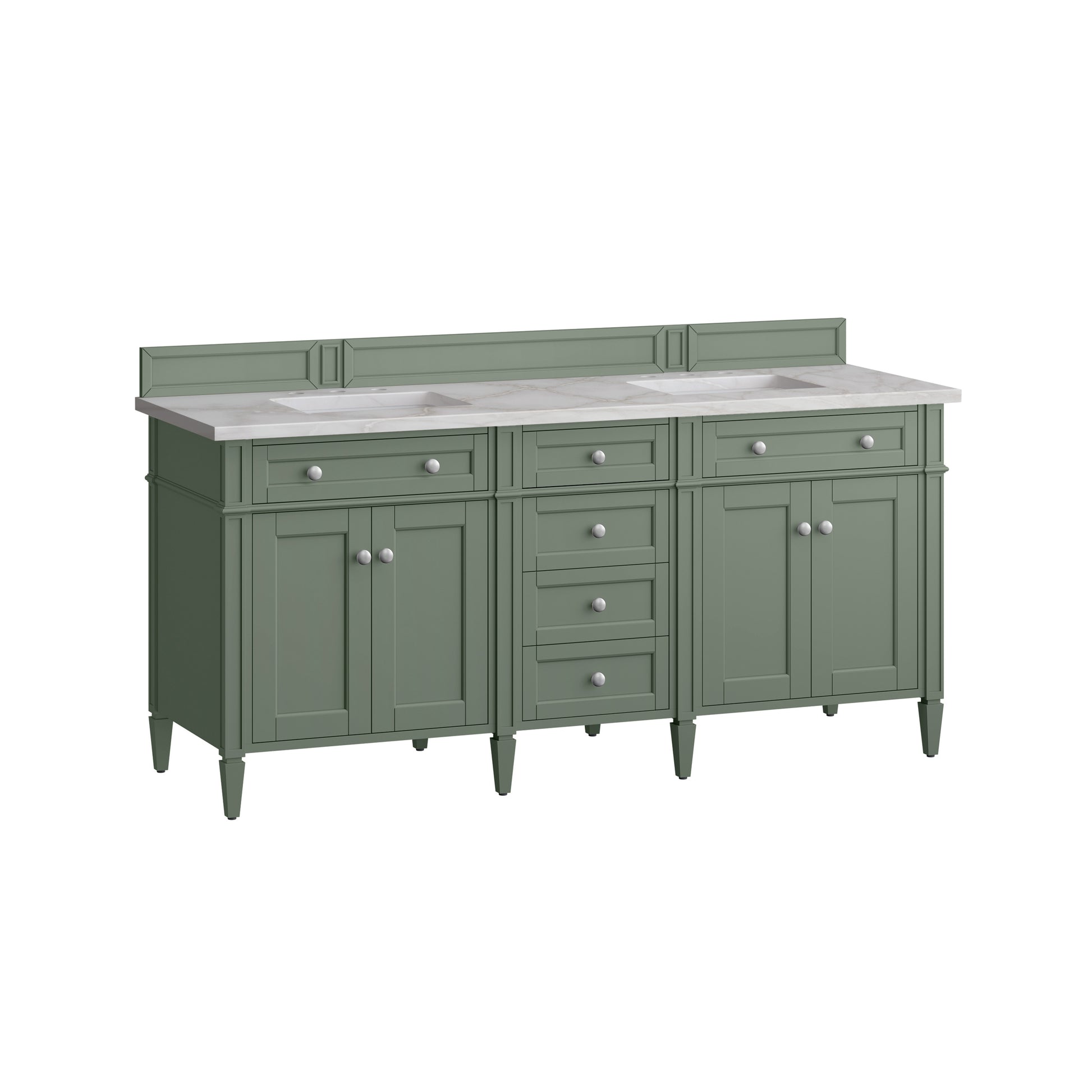 Brittany 72" Double Vanity, Smokey Celadon w/ 3 CM Victorian Silver Top