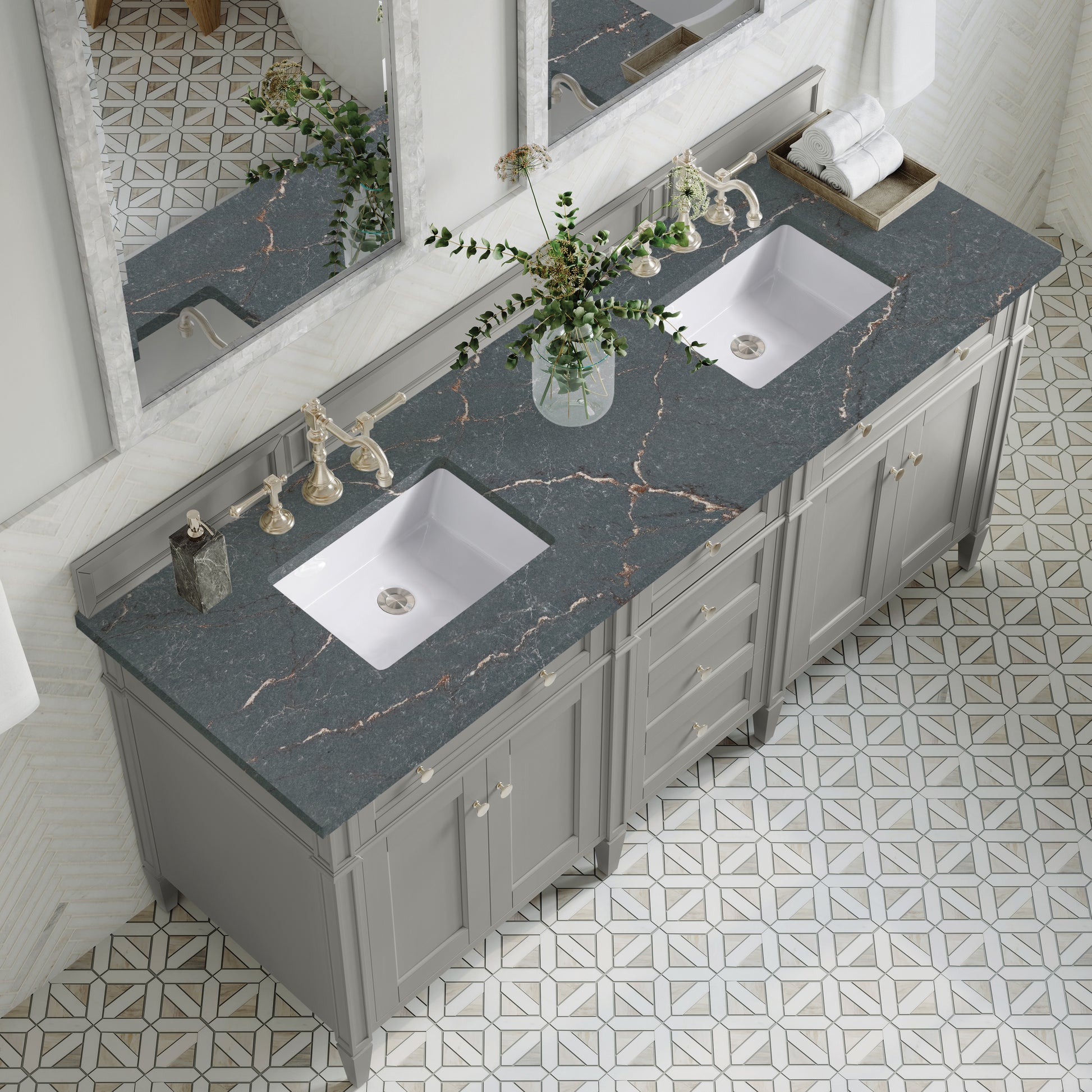 Brittany 72" Double Vanity, Urban Gray w/ 3 CM Parisien Bleu Silestone Top