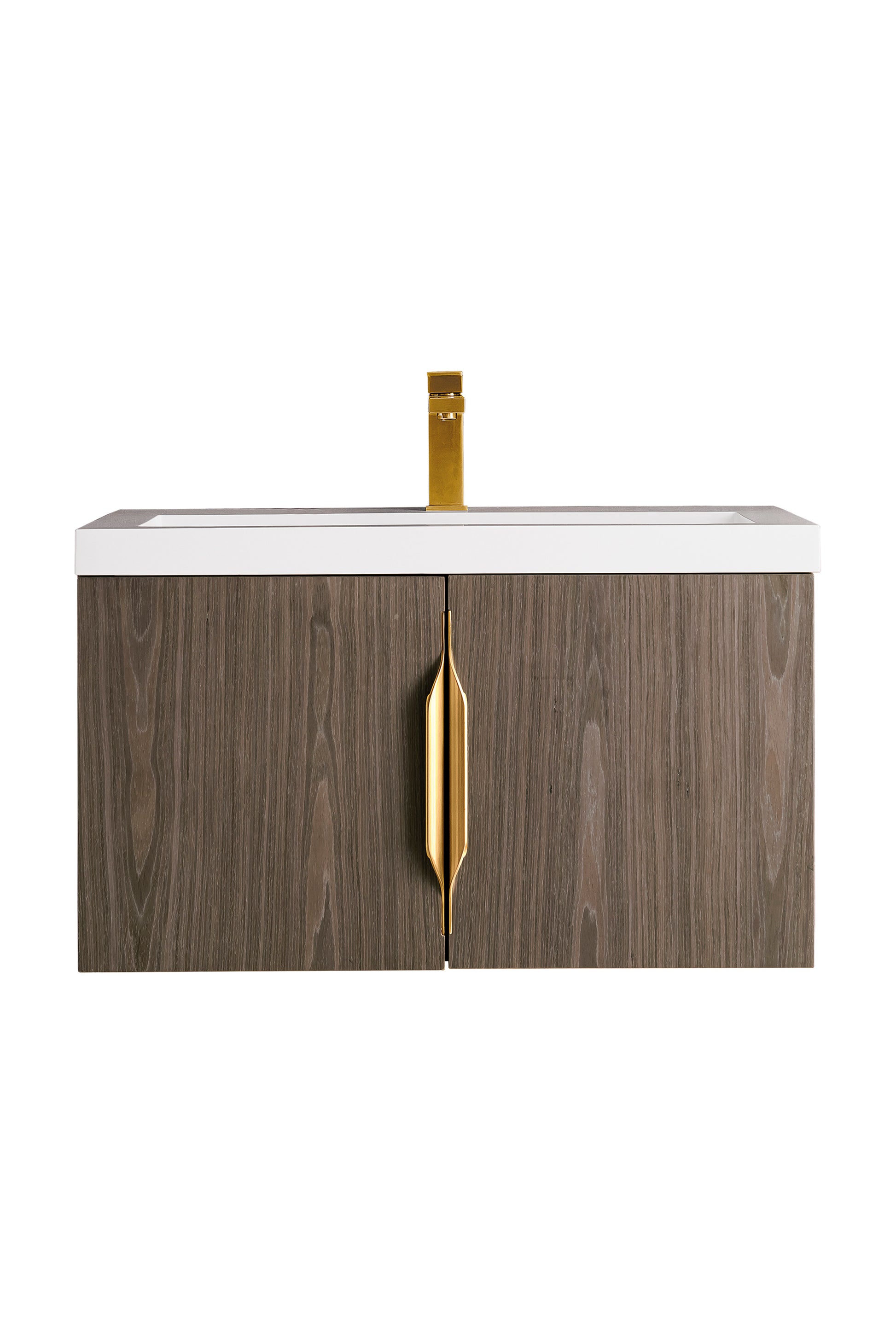 Add a fresh, contemporary touch to your bathroom with the elegant 31.5" Columbia Single Vanity by James Martin Vanities. Includes two soft-closing cabinet doors in a lovely Ash Gray weathered wood look, this stylish bathroom cabinet features clean lines and a simple elegant look. The door opens to an under-sink storage space with one adjustable shelf that will allow you to store your bathroom essentials. The beautiful Brushed Nickel hardware is included, giving this cabinet the perfect finishing touch. The cabinet is finished inside and out with a premium finish for superior moisture and UV resistance. This versatile cabinet includes an integrated White Glossy Composite Stone top that is pre-drilled for your convenience.