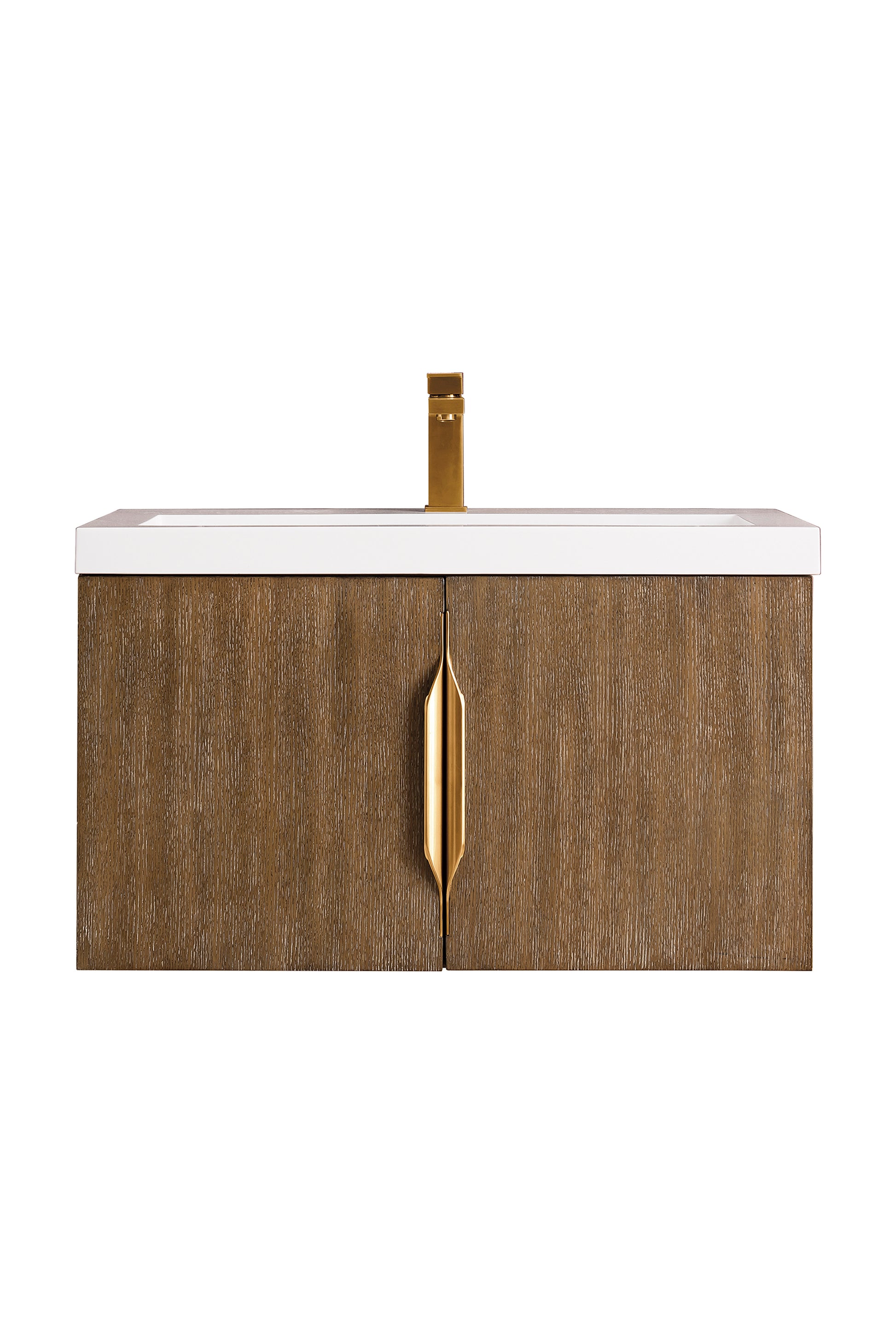 Columbia 31.5" Single Vanity, Latte Oak w/ White Glossy Composite Stone Top