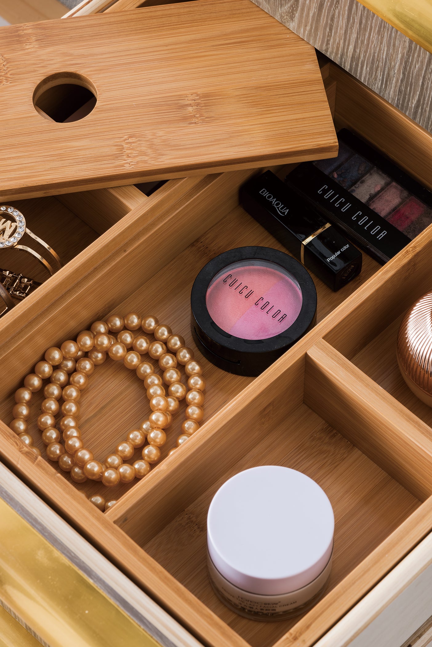 • Drawer bottoms are lined with our signature brushed aluminum laminate.