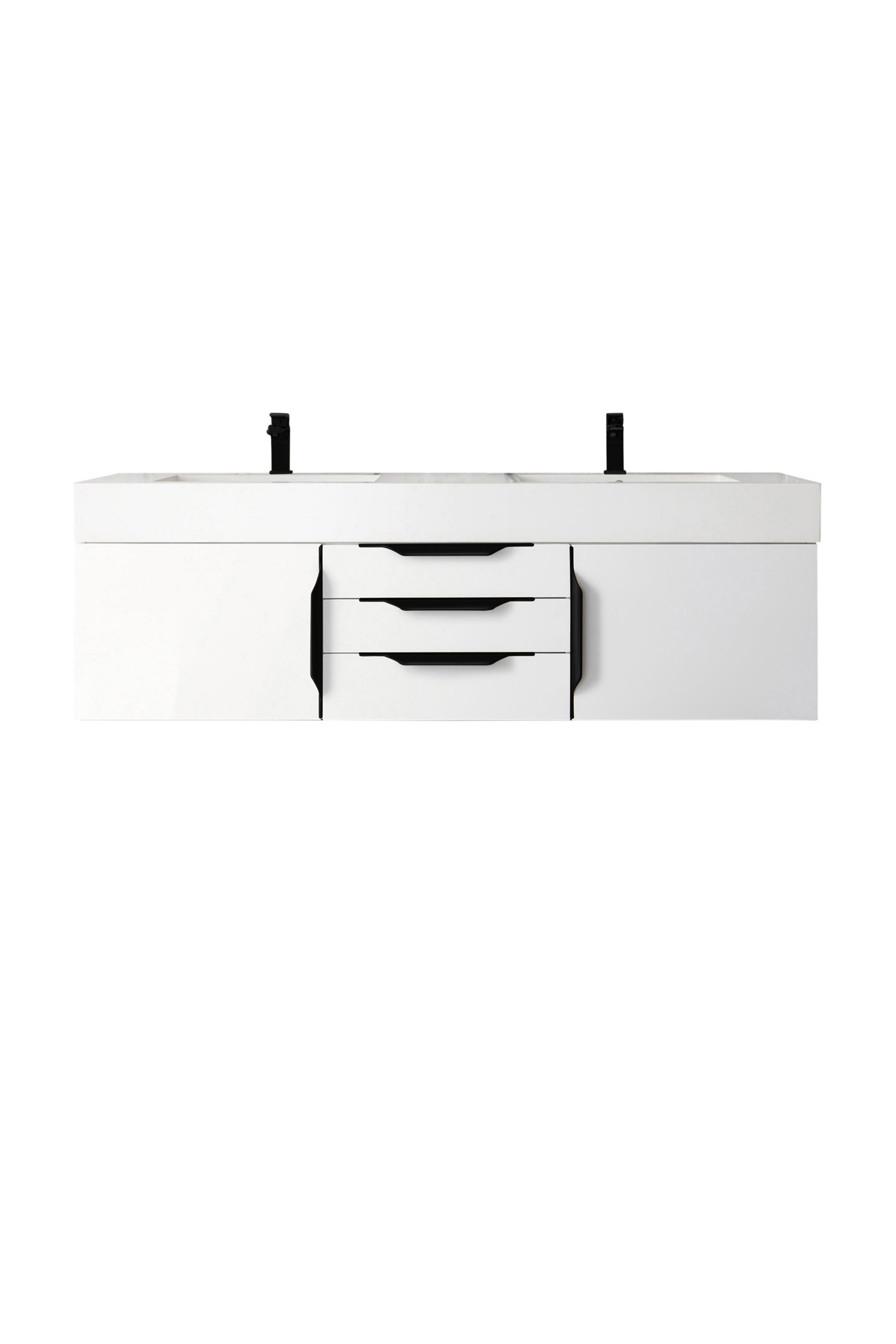 Columbia 59" Double Wall Mount Vanity, Glossy White, Matte Black w/ Glossy White Composite Stone Top