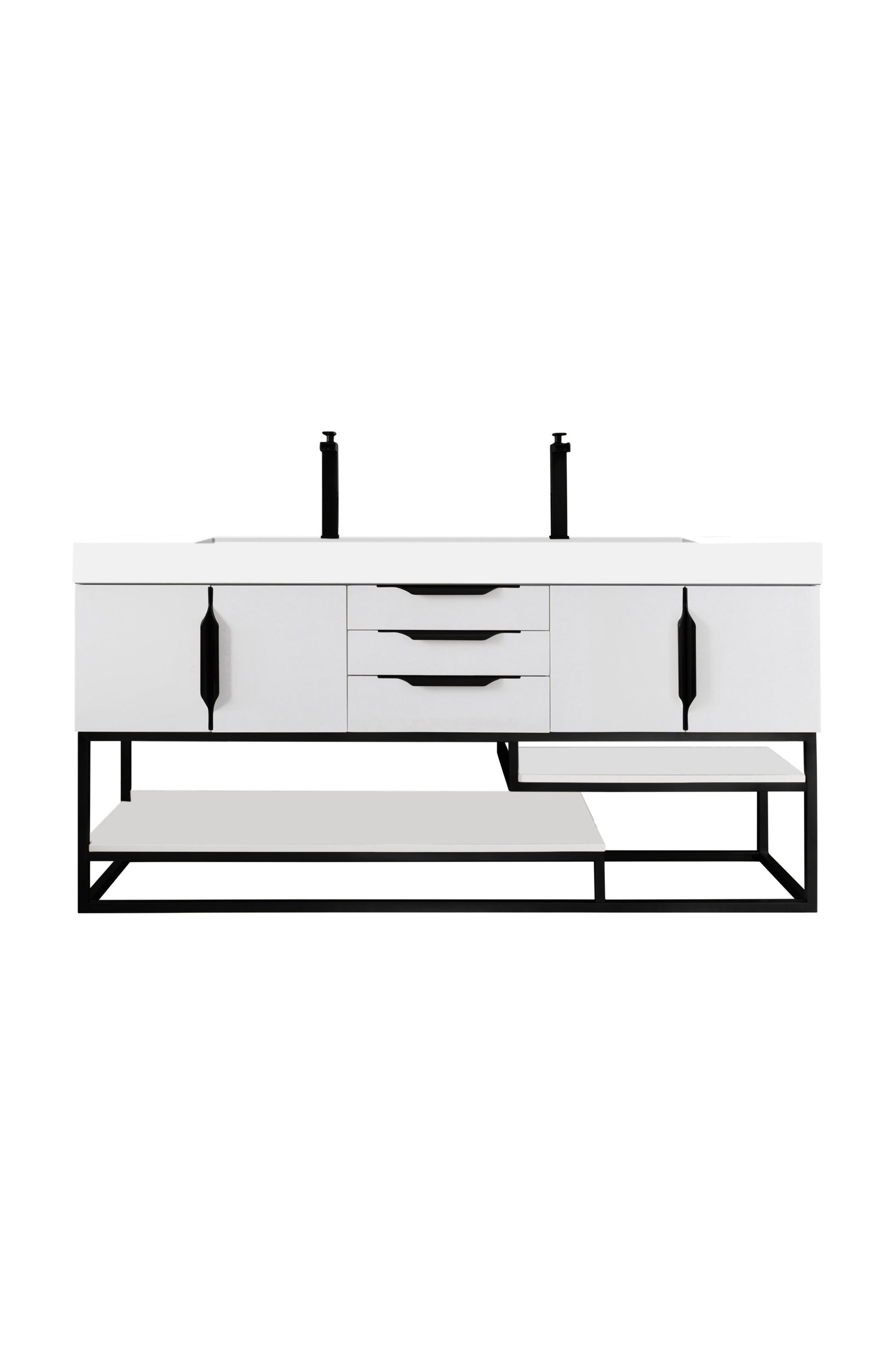 Columbia 72" Double Vanity, Glossy White, Matte Black w/ Glossy White Composite Stone Top