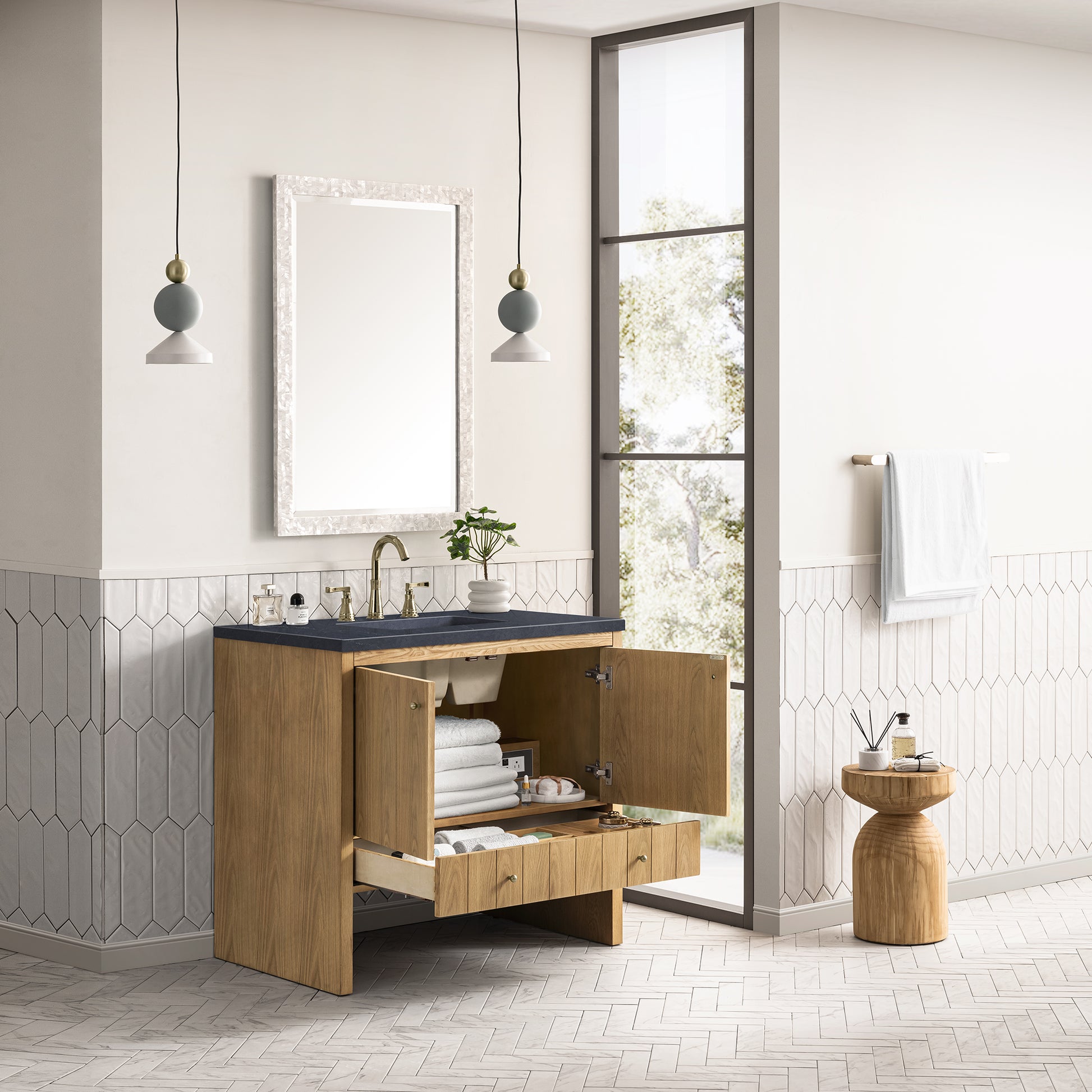 Hudson 36" Single Vanity, Light Natural Oak w/ 3 CM Charcoal Soapstone Top