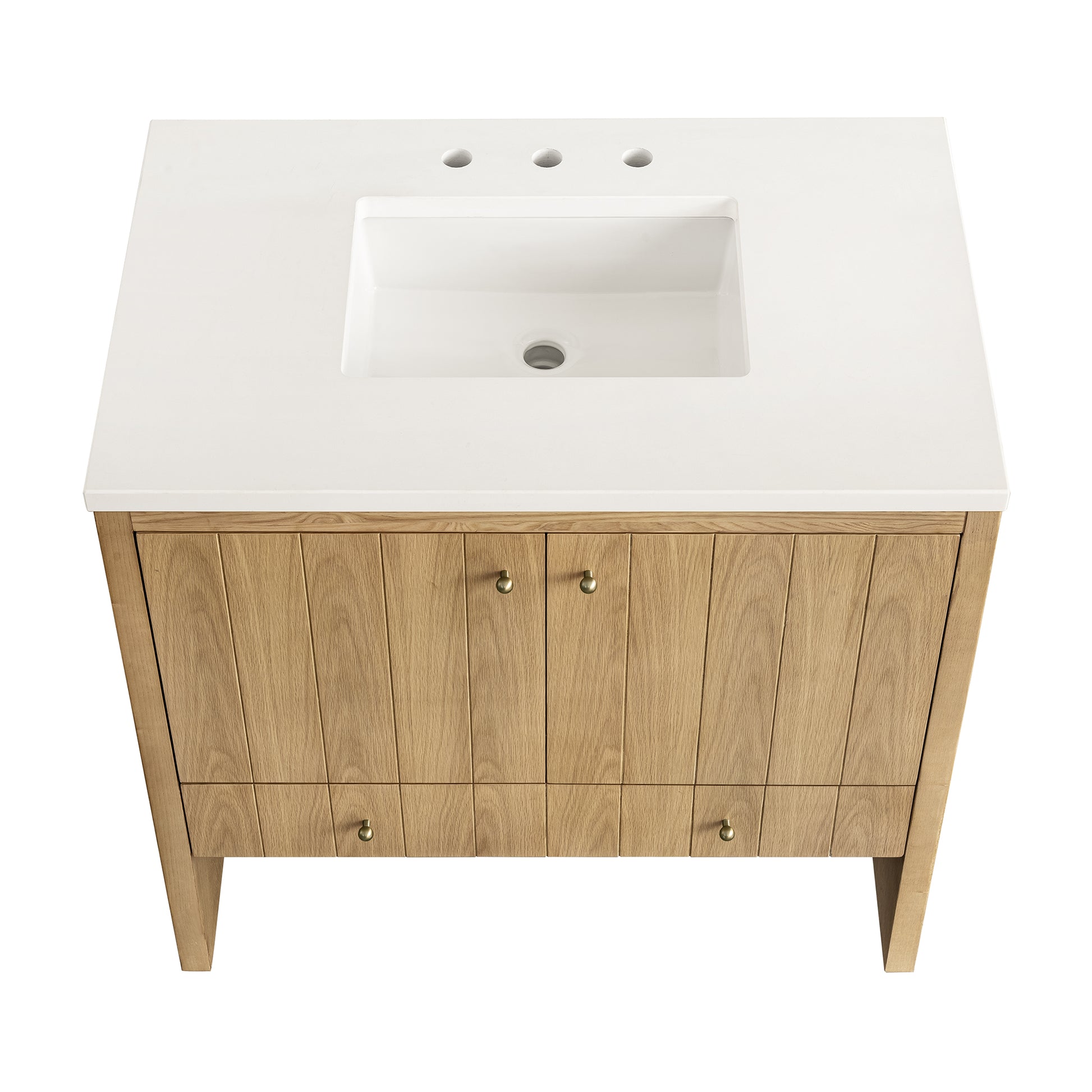 Hudson 36" Single Vanity, Light Natural Oak w/ 3 CM White Zeus Top