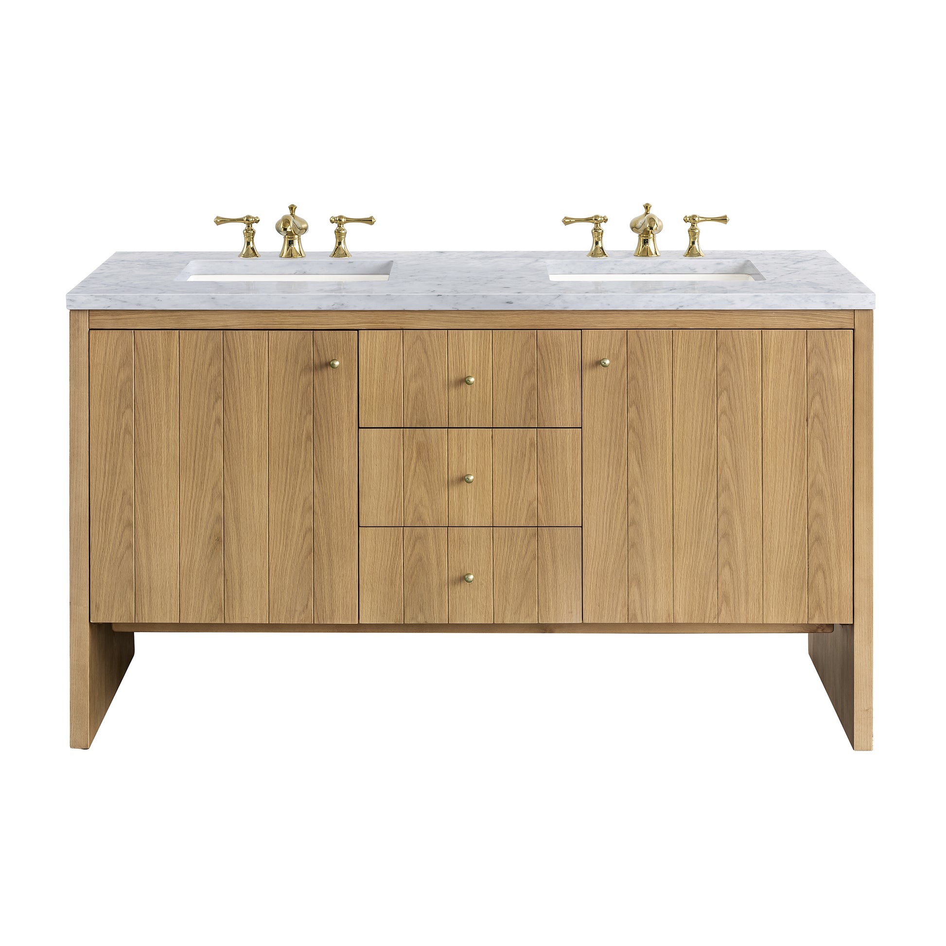 Hudson 60" Double Vanity, Light Natural Oak w/ 3 CM Carrara Marble Top