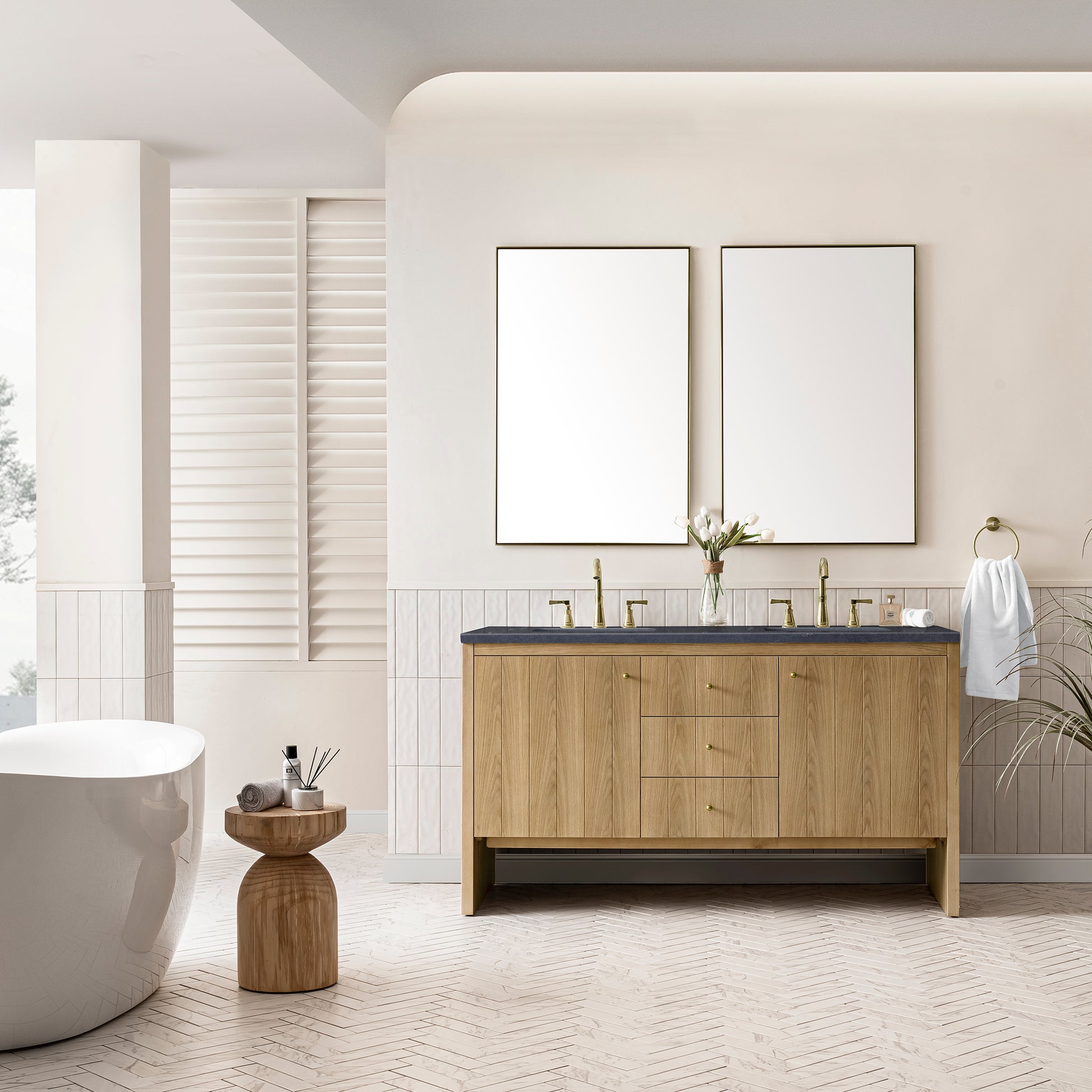Hudson 60" Double Vanity, Light Natural Oak w/ 3 CM Charcoal Soapstone Top