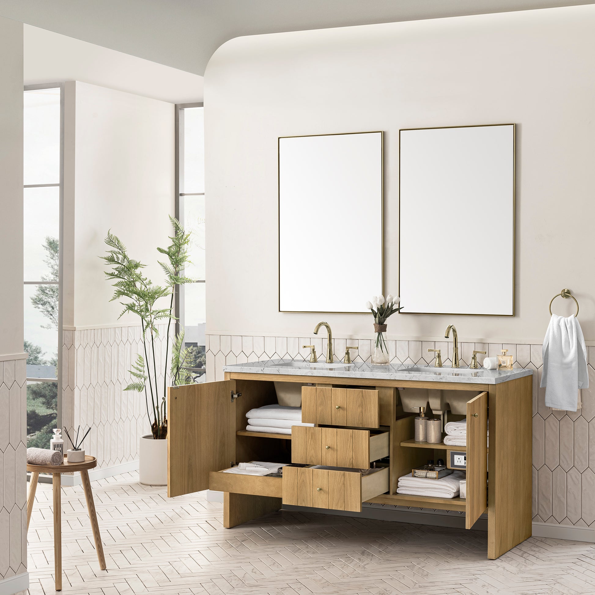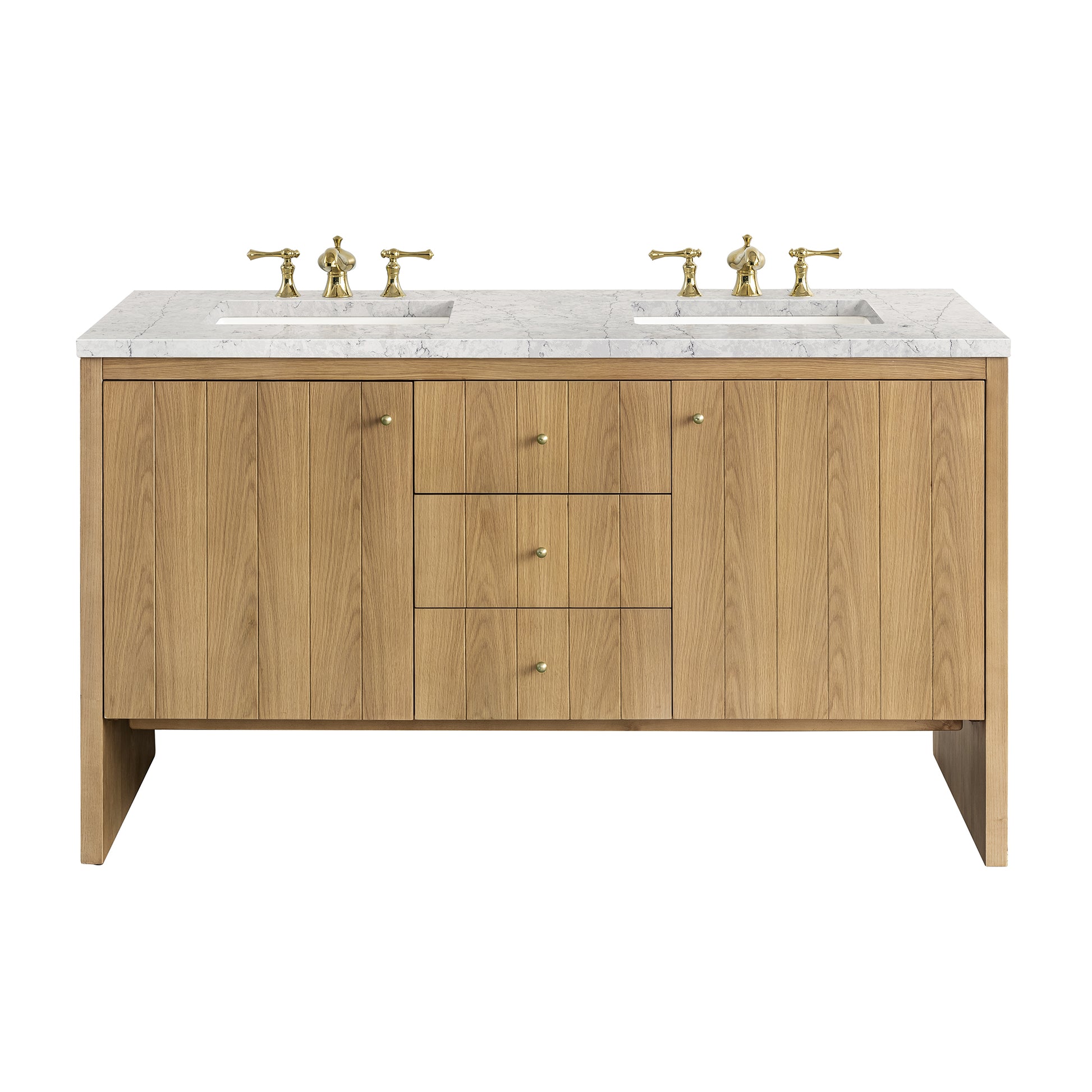 Hudson 60" Double Vanity, Light Natural Oak w/ 3 CM Eternal Jasmine Pearl Top