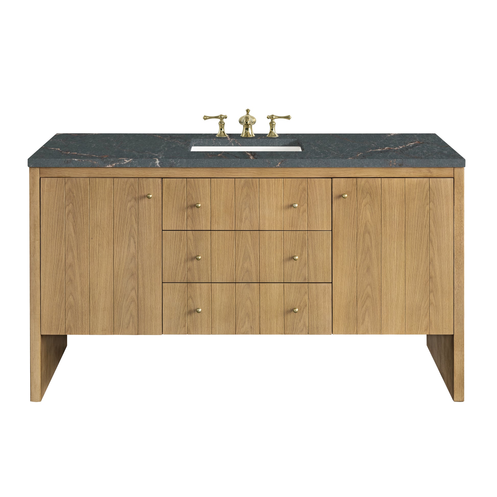 Hudson 60" Single Vanity, Light Natural Oak w/ 3 CM Parisien Bleu Top w/ FreePower Wireless Charger