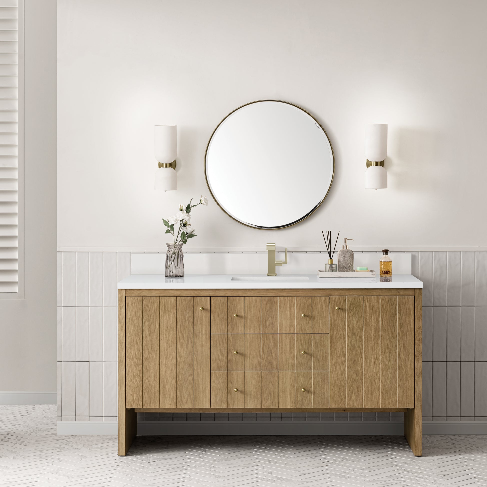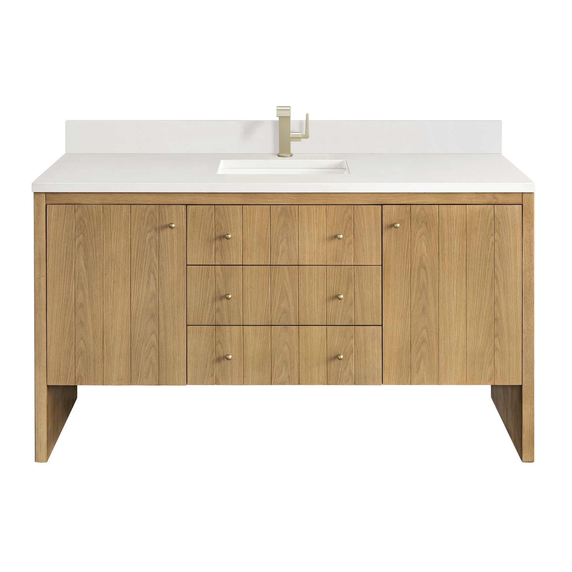 Hudson 60" Single Vanity, Light Natural Oak w/ Single Hole 3 CM White Zeus Top & Backsplash
