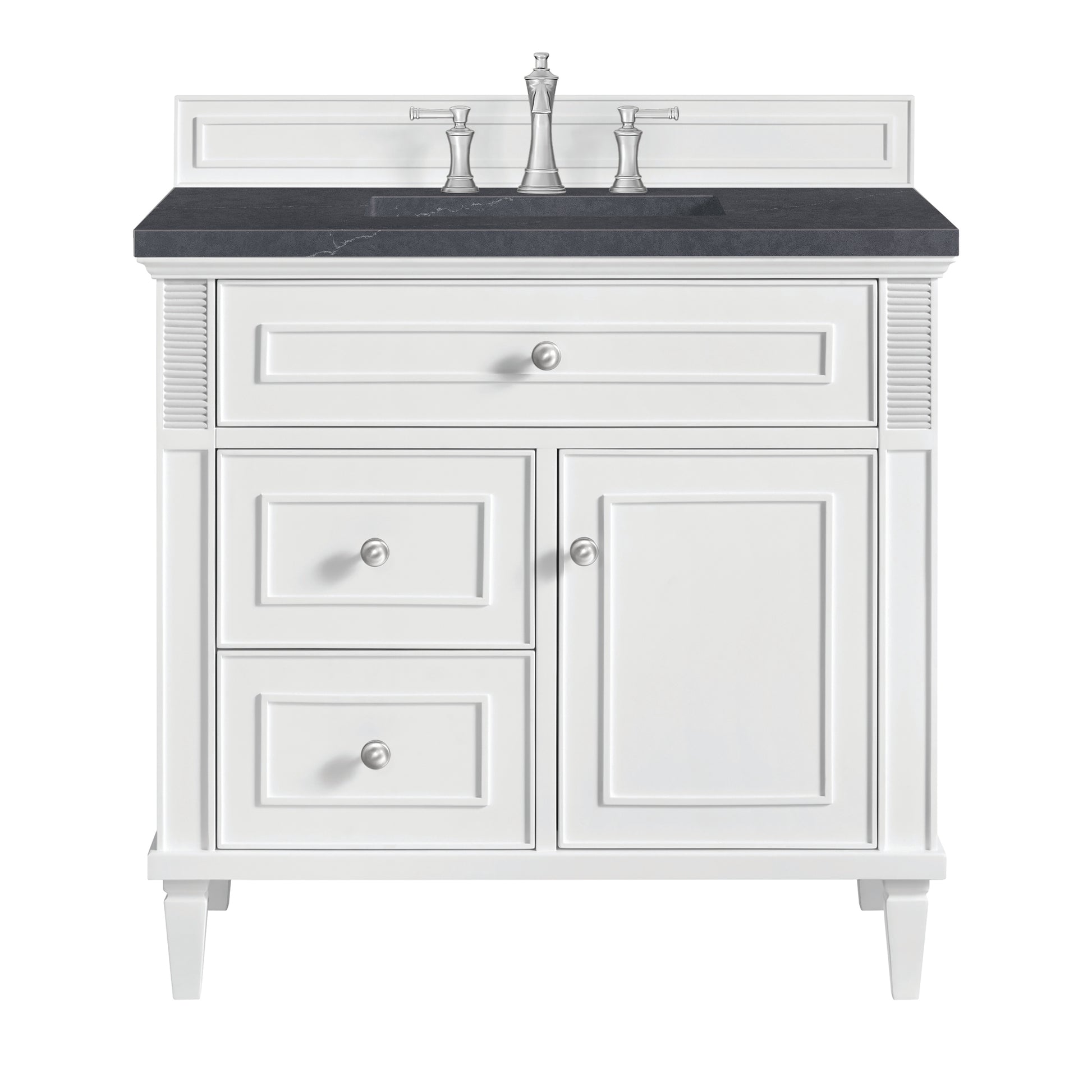 Lorelai 36" Single Vanity, Bright White w/ 3 CM Charcoal Soapstone Silestone Top