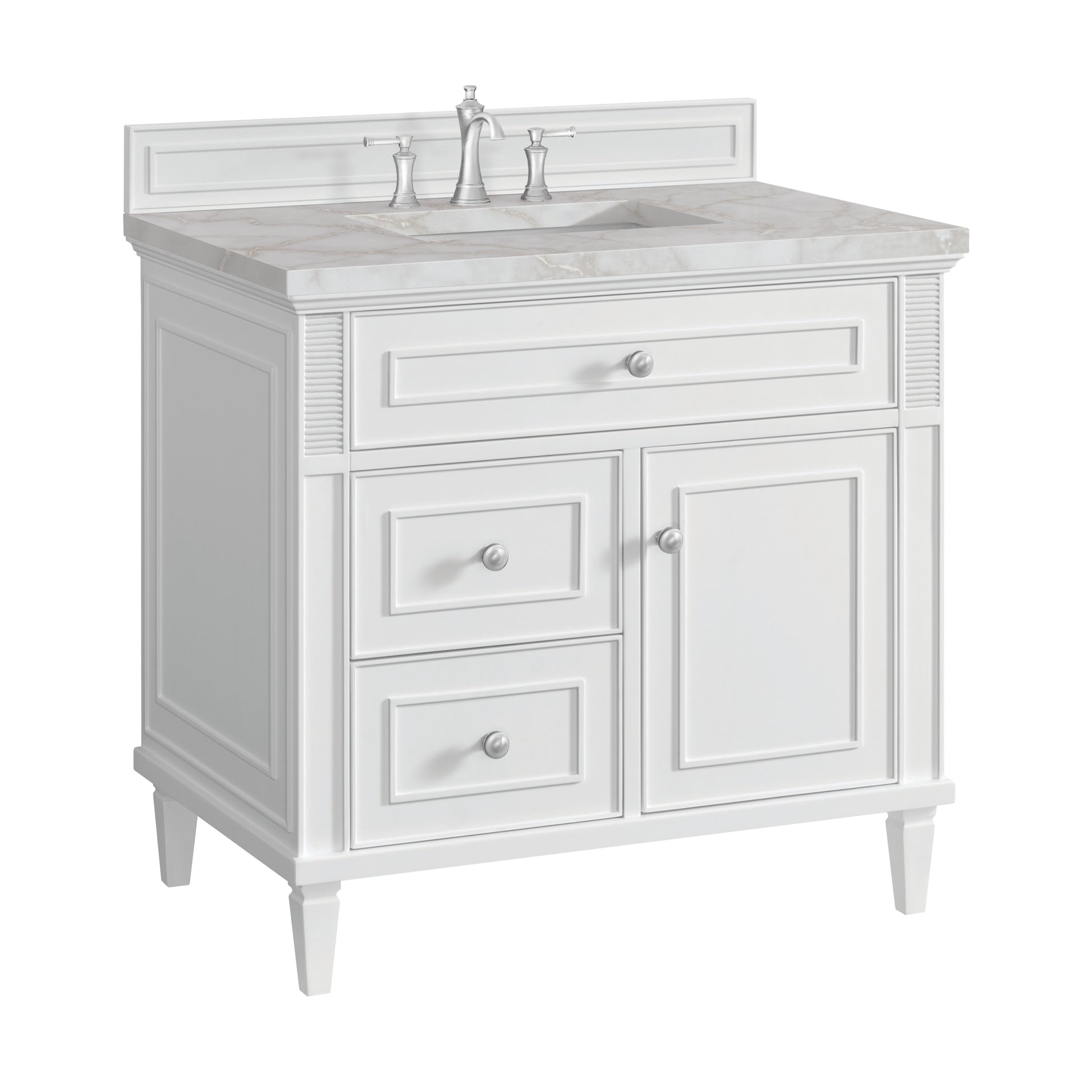 Lorelai 36" Single Vanity, Bright White w/ 3 CM Victorian Silver Silestone Top
