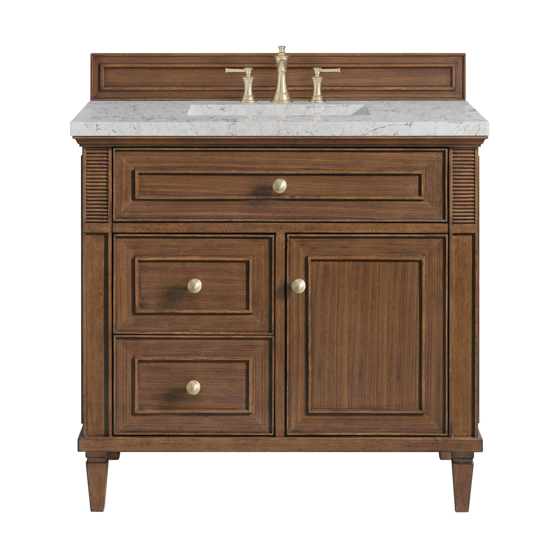Lorelai 36" Single Vanity, Mid-Century Walnut w/ 3 CM Eternal Jasmine Pearl Silestone Top