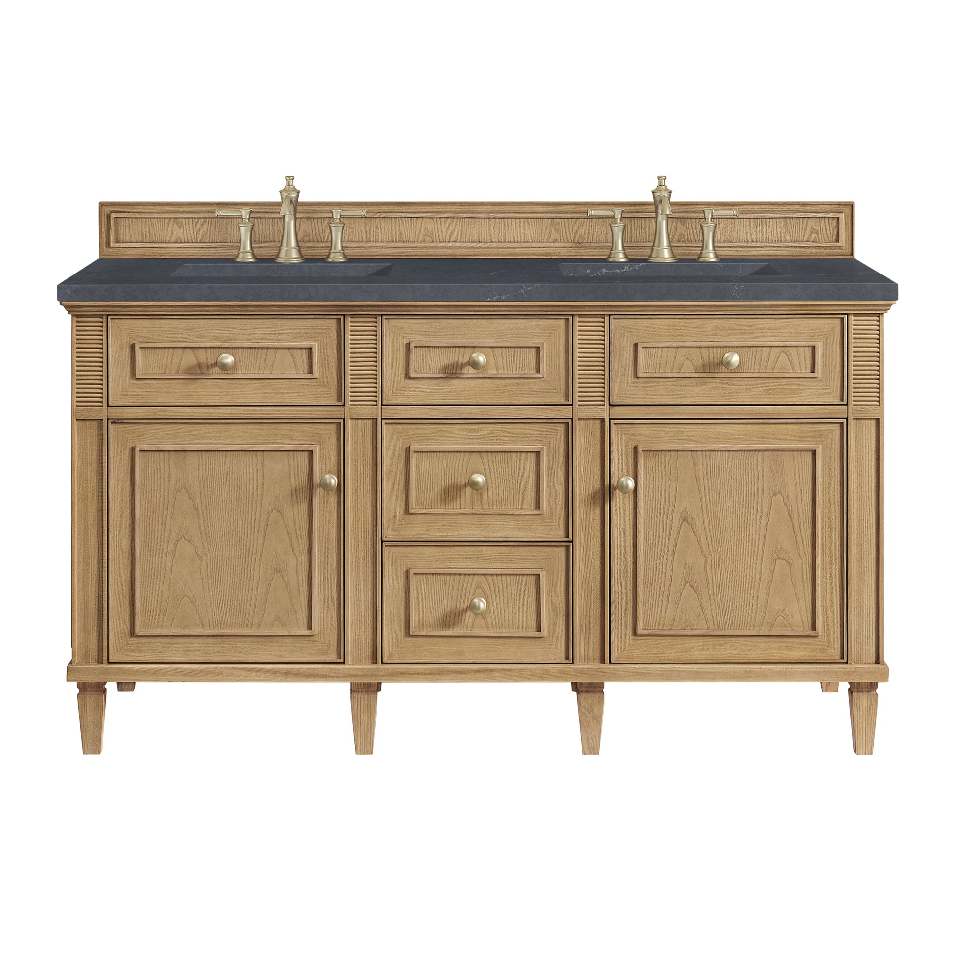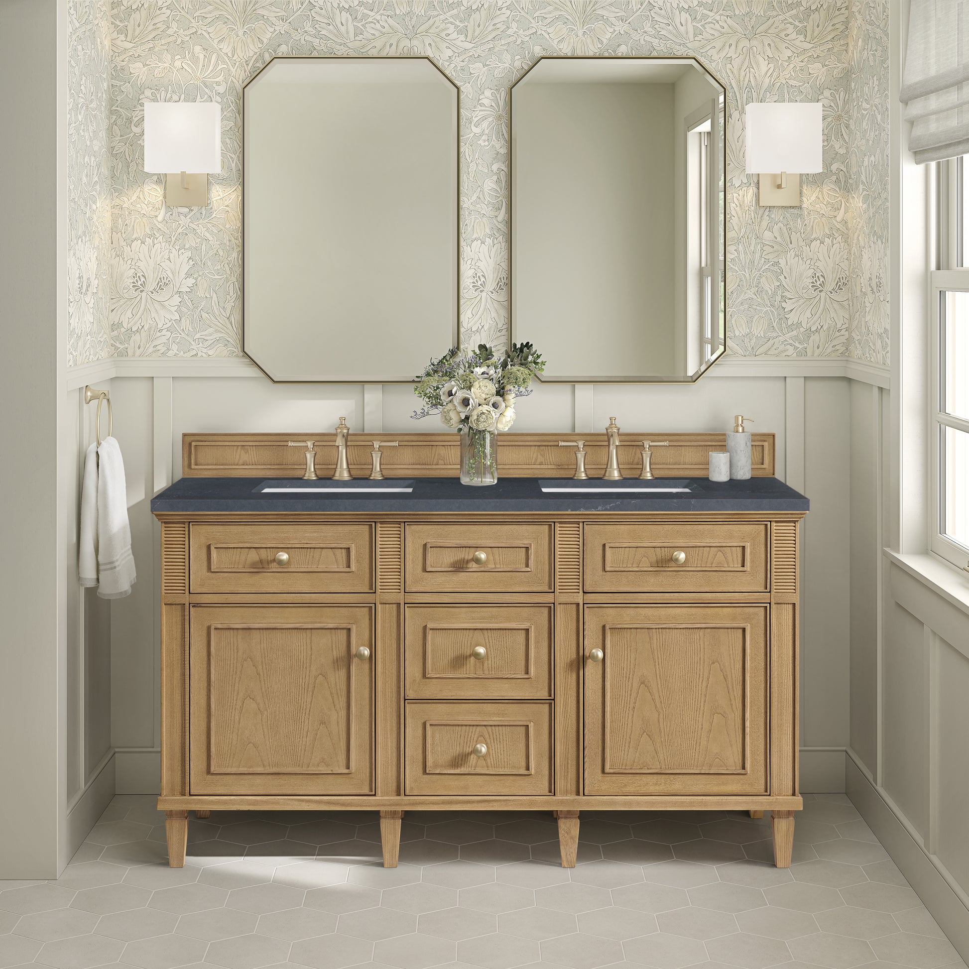 Lorelai 60" Double Vanity, Light Natural Oak w/ 3 CM Charcoal Soapstone Silestone Top