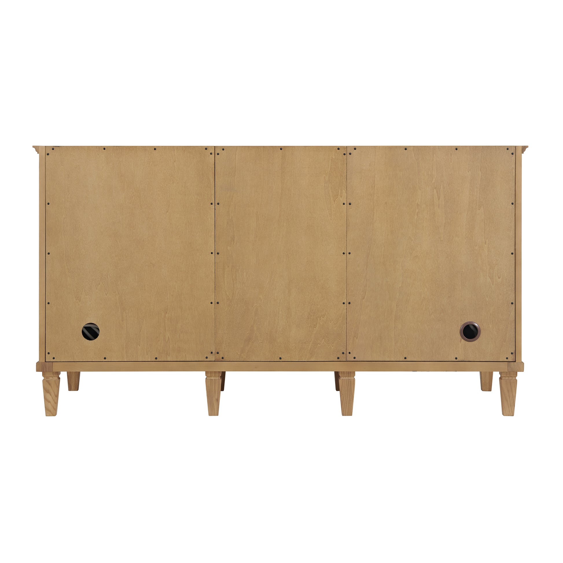 The 60" Lorelai Double Vanity celebrates timeless form and exquisite finish details, combined with practical function. The Light Natural Oak finish is accented by reeded details, and clean, raised picture frame molding. Coin-edge knobs in Champagne Brass provide the perfect accent. This two-door cabinet opens to a spacious interior with shelves and convenient USB/Electric power outlets. Three traditional drawers and two tip-outs offer additional storage space. Completing this piece is a distinguished top, characterized by depth and a sense of movement with a suede finish. The Charcoal Soapstone Silestone top is a timeless statement to complete the look of your vanity.