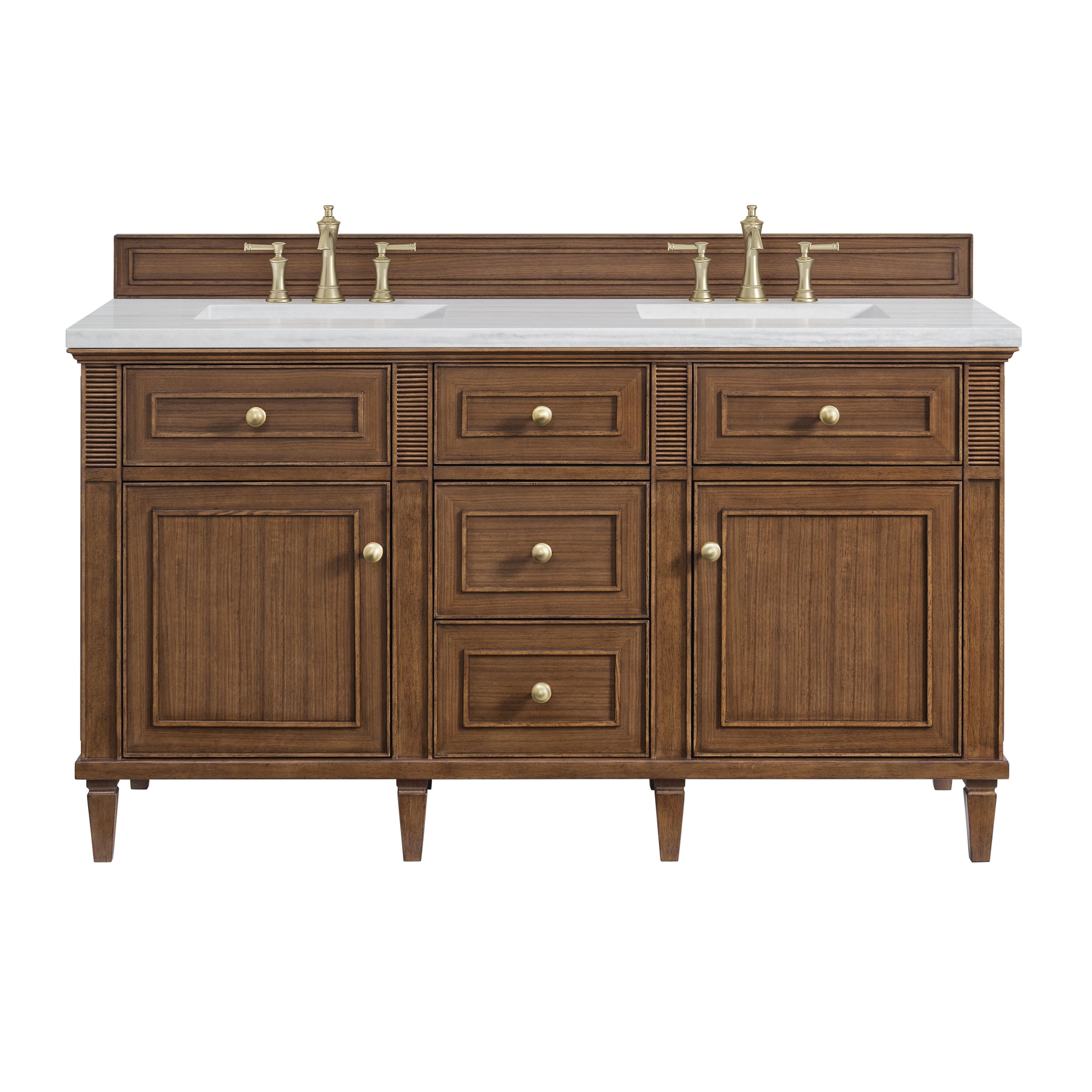 Lorelai 60" Double Vanity, Mid-Century Walnut w/ 3 CM Arctic Fall Solid Surface Top