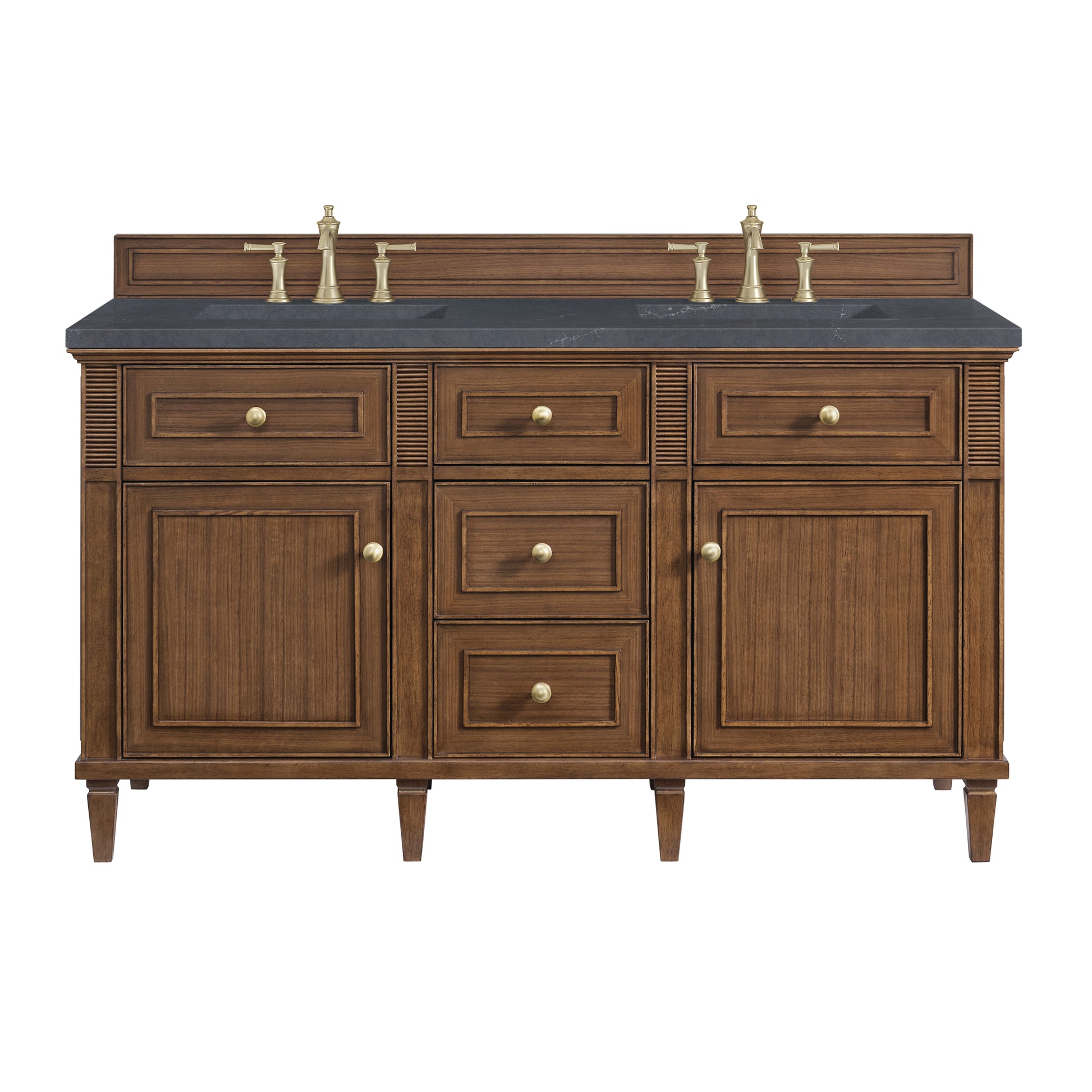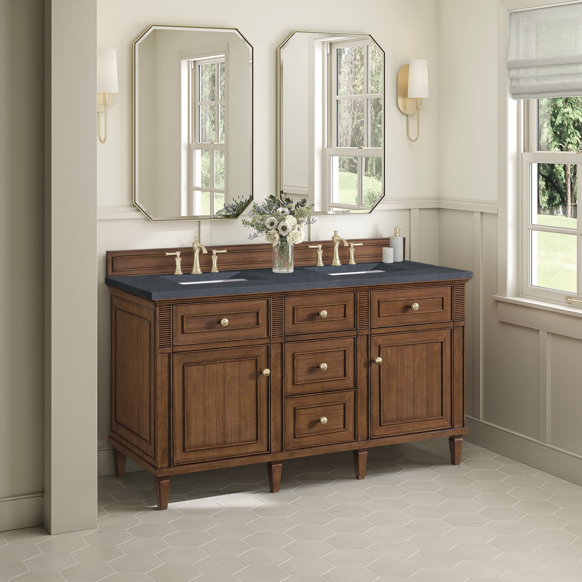 Lorelai 60" Double Vanity, Mid-Century Walnut w/ 3 CM Charcoal Soapstone Silestone Top