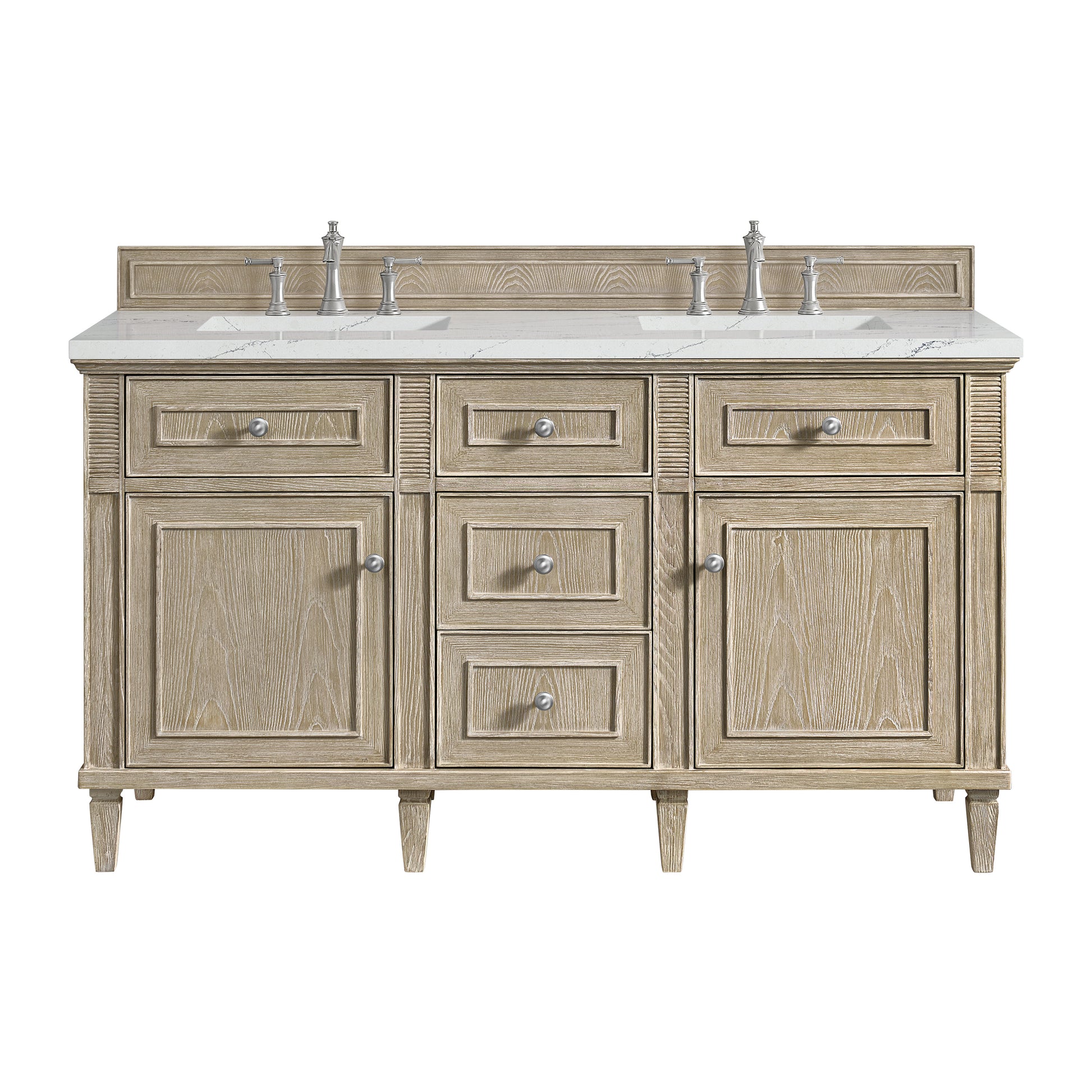 Lorelai 60" Double Vanity, Whitewashed Oak w/ 3 CM Ethereal Noctis Silestone Top
