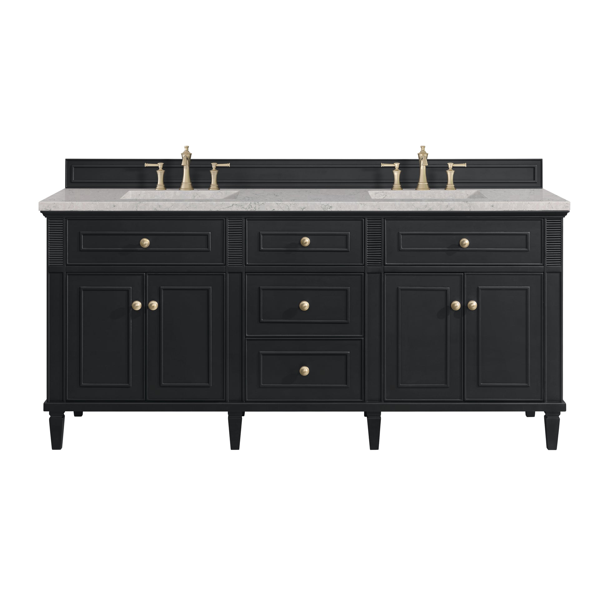 Lorelai 72" Double Vanity, Black Onyx w/ 3 CM Eternal Jasmine Pearl Silestone Top