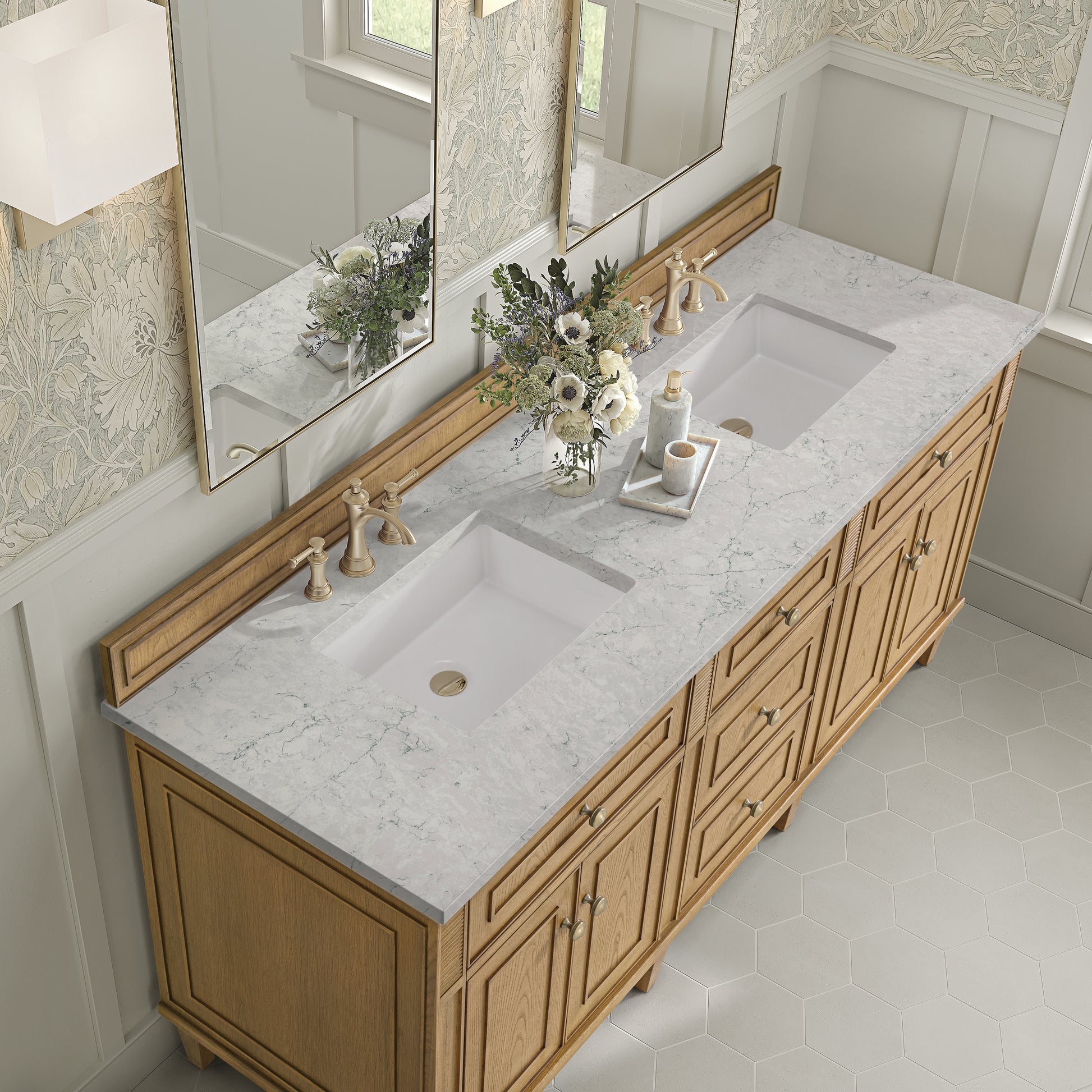 Lorelai 72" Double Vanity, Light Natural Oak w/ 3 CM Eternal Jasmine Pearl Silestone Top