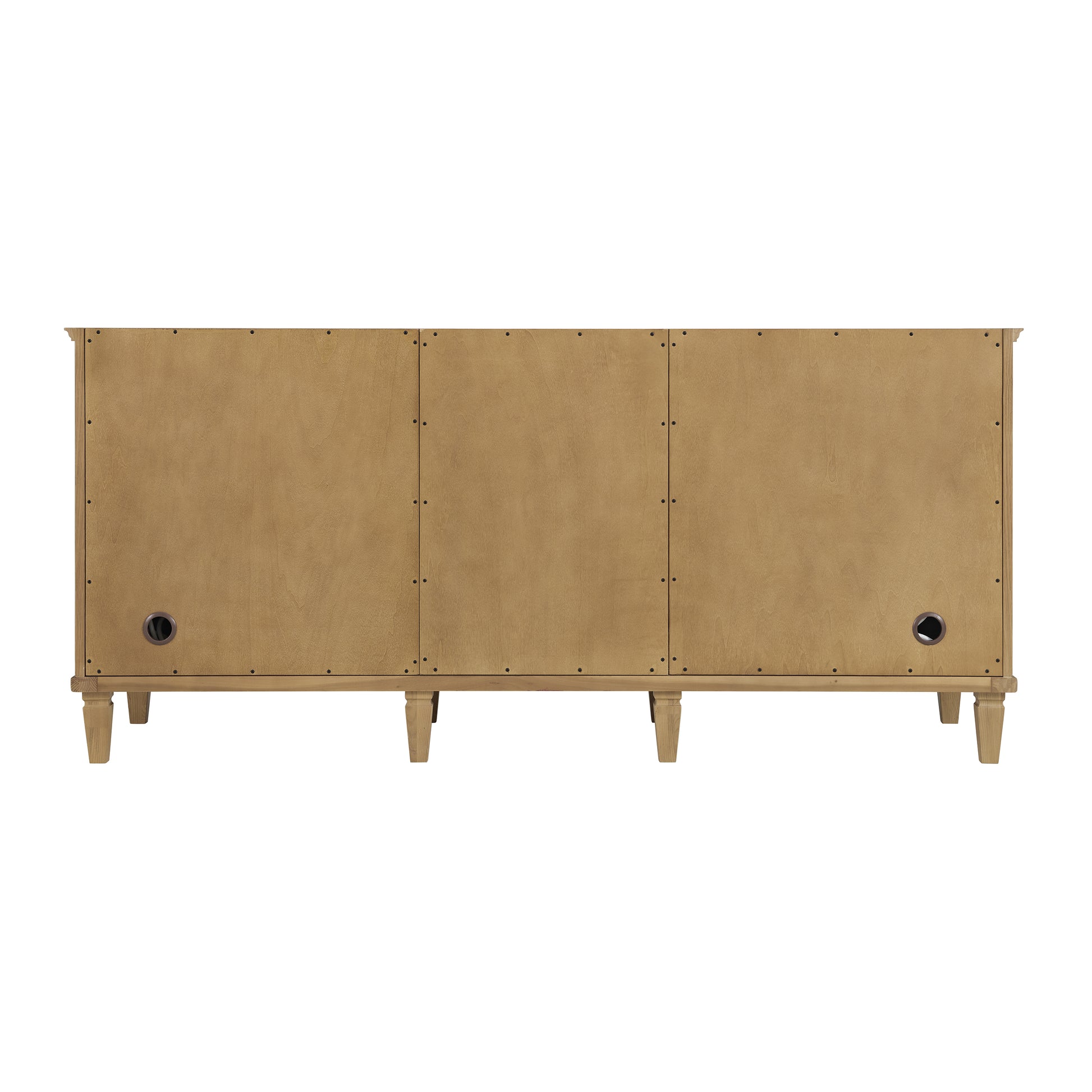 • Two tipout drawers, three drawers, and four doors that open to interior shelving