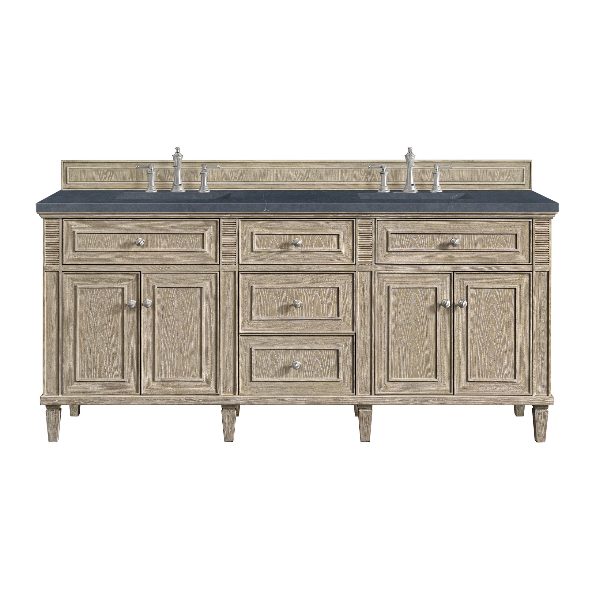 Lorelai 72" Double Vanity, Whitewashed Oak w/ 3 CM Charcoal Soapstone Silestone Top