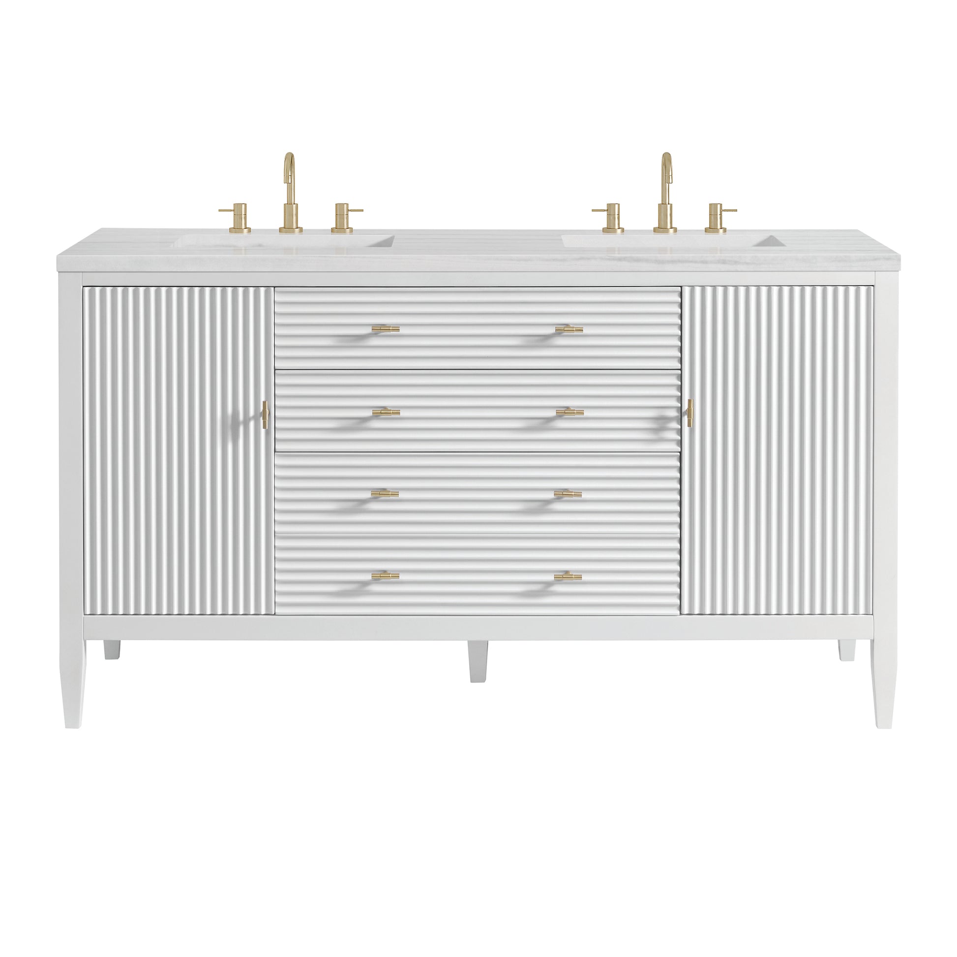 Myrrin 60" Double Vanity, Bright White w/ 3 CM Arctic Fall Solid Surface Top