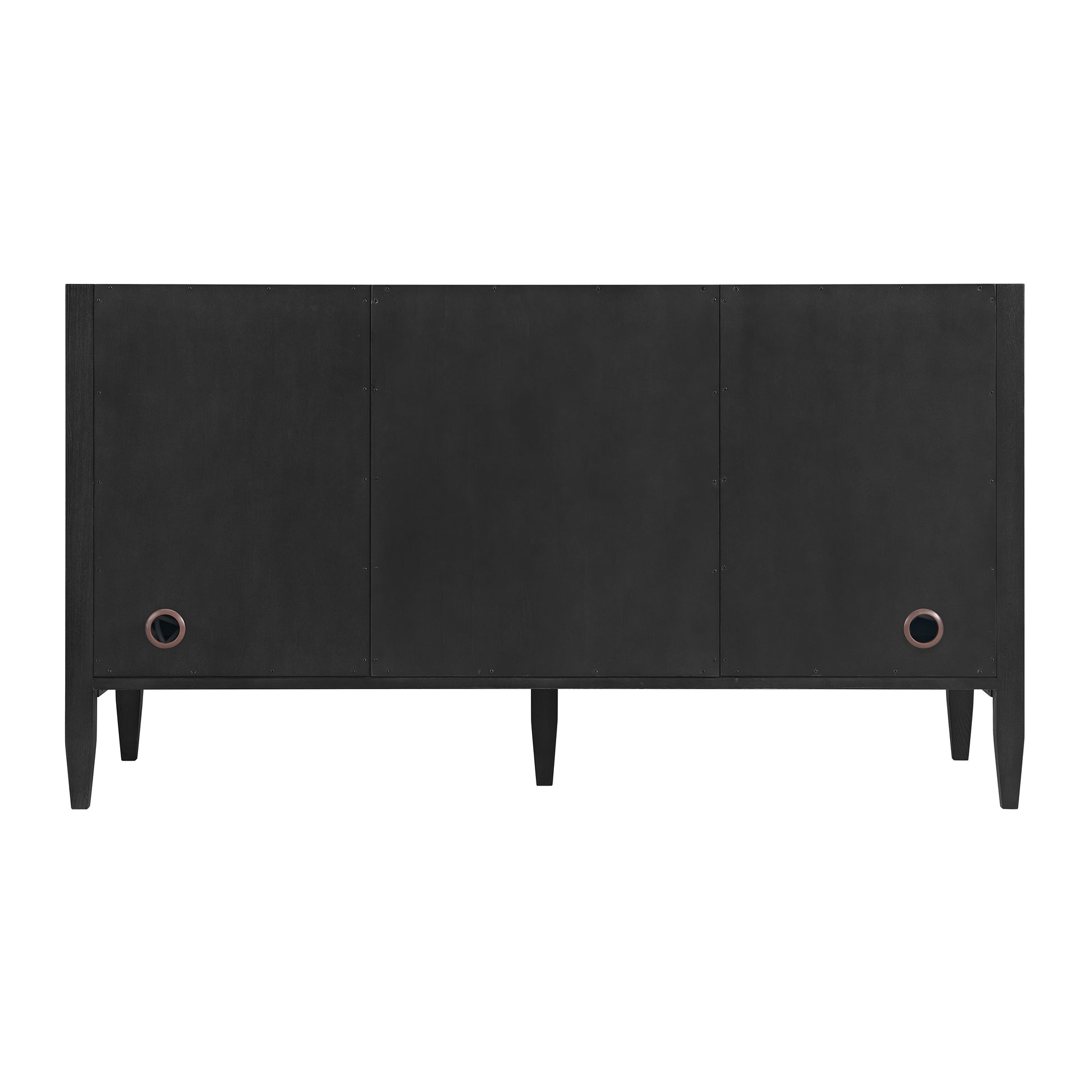 The 60" Myrrin Double Vanity features a minimalistic silhouette with fluted details, resulting in a blend of classical elegance and contemporary design. The deeply fluted panels run perpendicular on the doors and drawers, adding sophistication and visual interest to the design. Toggle-style knobs in Champagne Brass provide a luxe accent to the sophisticated Carbon Oak finish. The two-door cabinet opens to a spacious interior with a single shelf and a convenient USB/Electric power outlet. Two traditional drawers and a tip-out lend additional storage. Completing this beautiful vanity is a 3 cm solid surface Arctic Fall vanity top, which displays horizontal grey veining, giving you the look of classic marble with the benefits of modern technology.